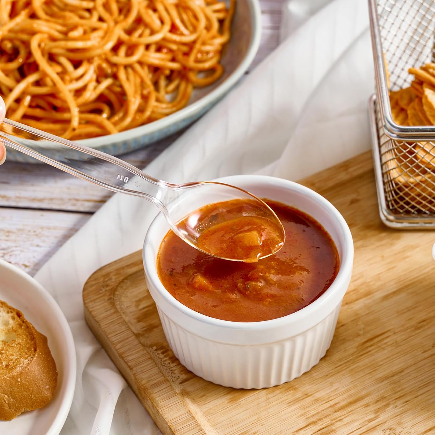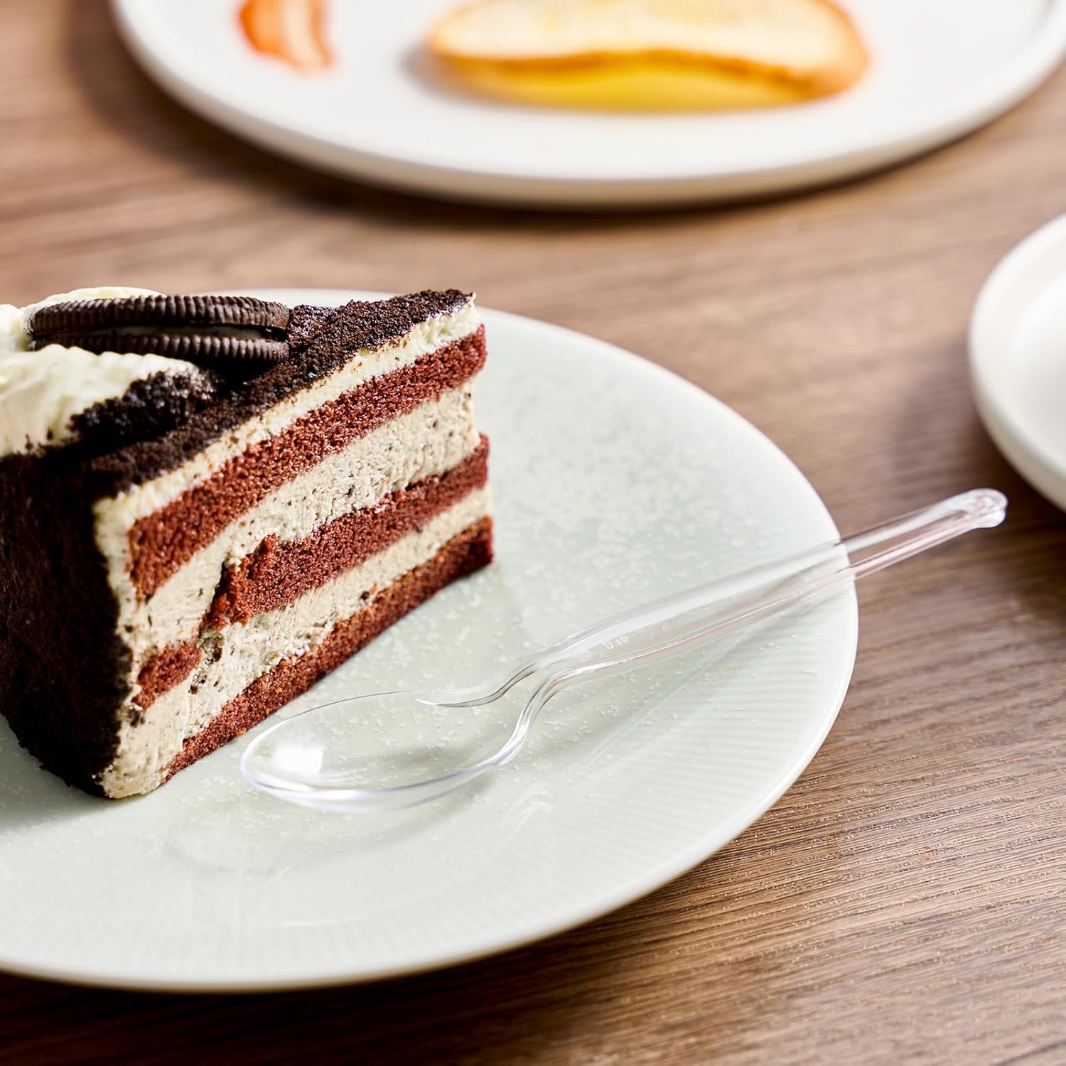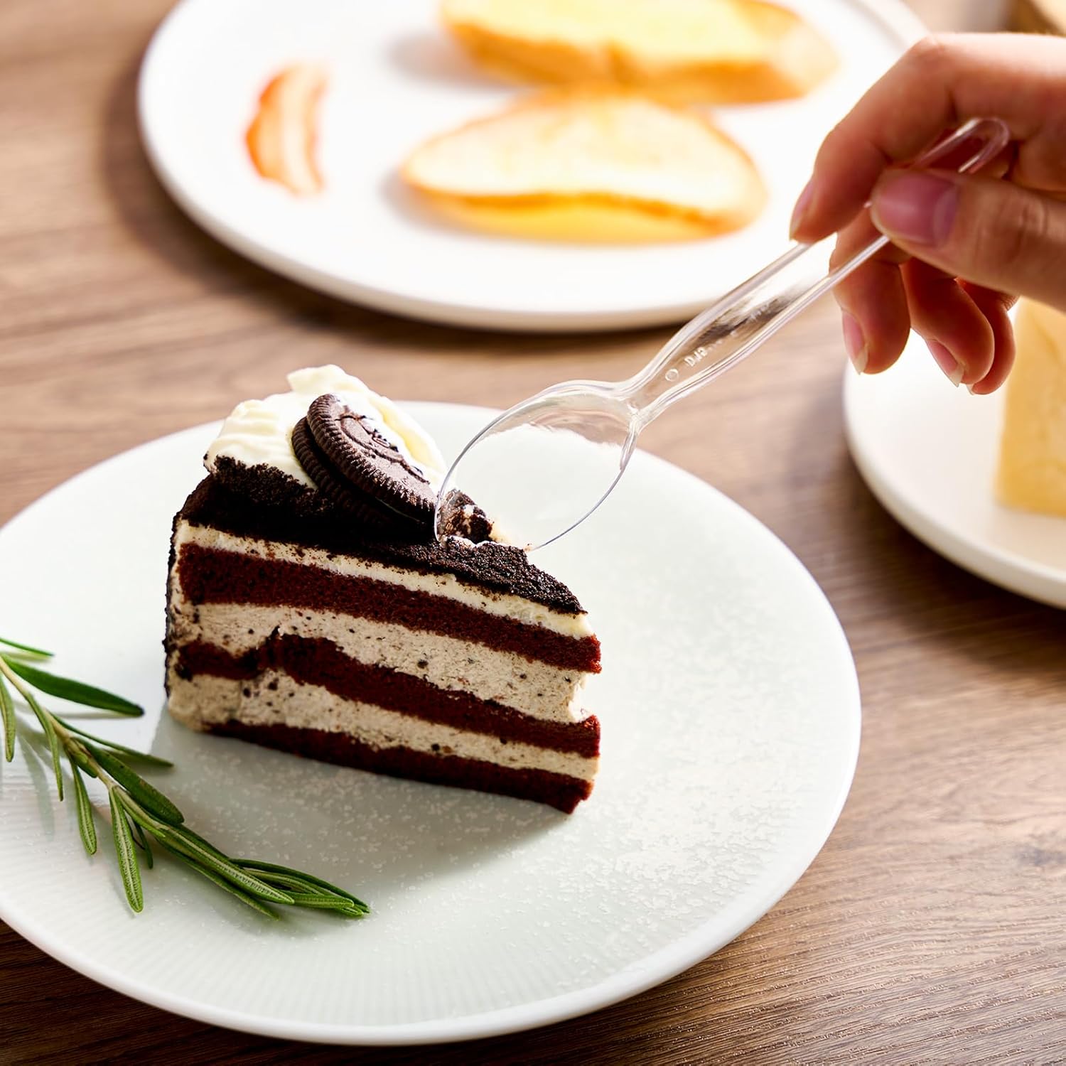 - .CLASSIC DESIGN: The disposable plastic clear spoon shows a classic design and comfortable touch. Its well-designed curved shape will not bend or break when in use, and the handle and smooth spoon head are perfectly combined to bring you a unique feeling on the tip of your tongue.