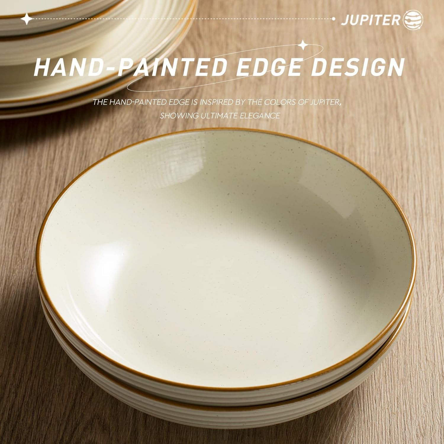 - 【Attractive Design】Our pasta bowl was elaborated by artisans. Its speckles and hand-painted edge are great distinctive. The design of ring is inspired by Europa's orbit around Jupiter. Delicious food should be served in beautiful dishes.