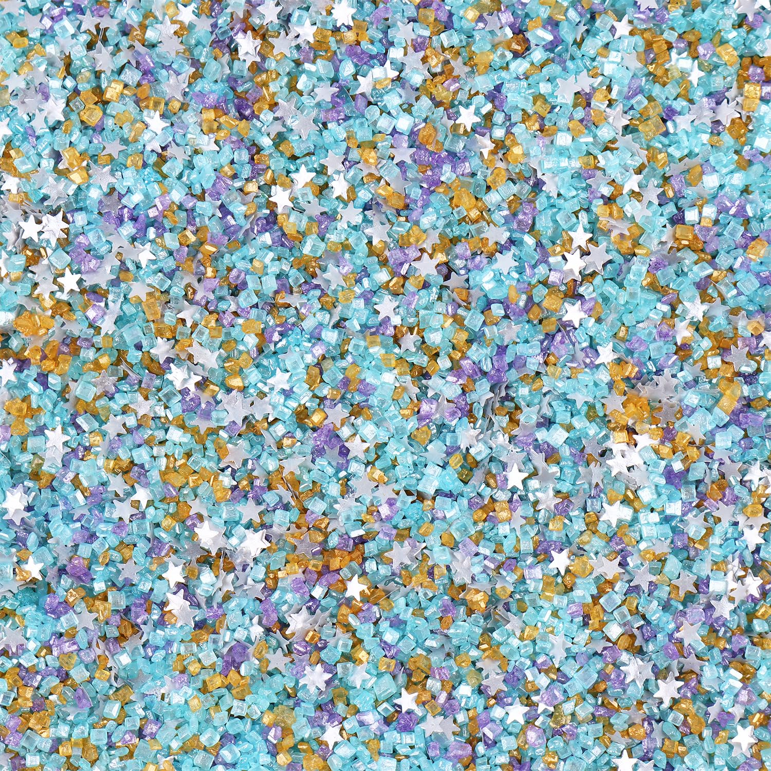 Sanding Sugar Edible Silver Glitter Stars Mix, Edible Blue&Purple Sugar Sprinkles for Cake Decorating, Sparkling Edible Sanding Sugar for Cupcake Toppers Cookie Decorations For Wedding Party Celebrations 3.5oz (BLue)