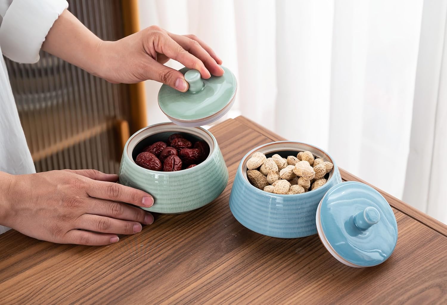 - 【CERAMIC MATERIAL】: Made of high quality ceramic. Health and non-toxic, creating an airtight environment to keep contents dry, keep ingredients fresh and safe. Delightful, quality hermetically sealed round storage tin.Durable and easy to clean.
