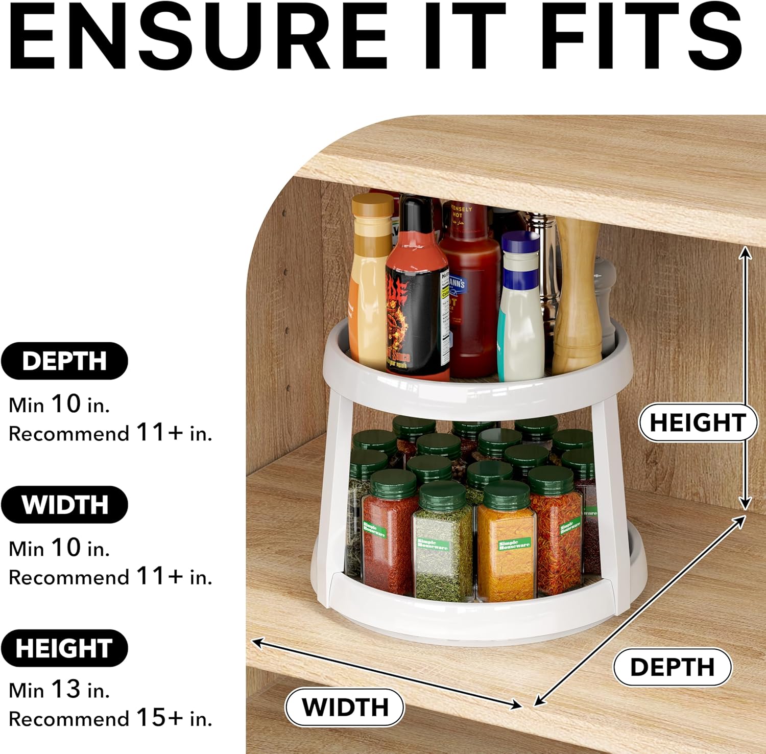 - 2-Tier Rotating Turntable: Dual-layer design maximizes vertical space, perfect for tall cabinets or countertops; use as 2 tiers or as a single to fit your needs