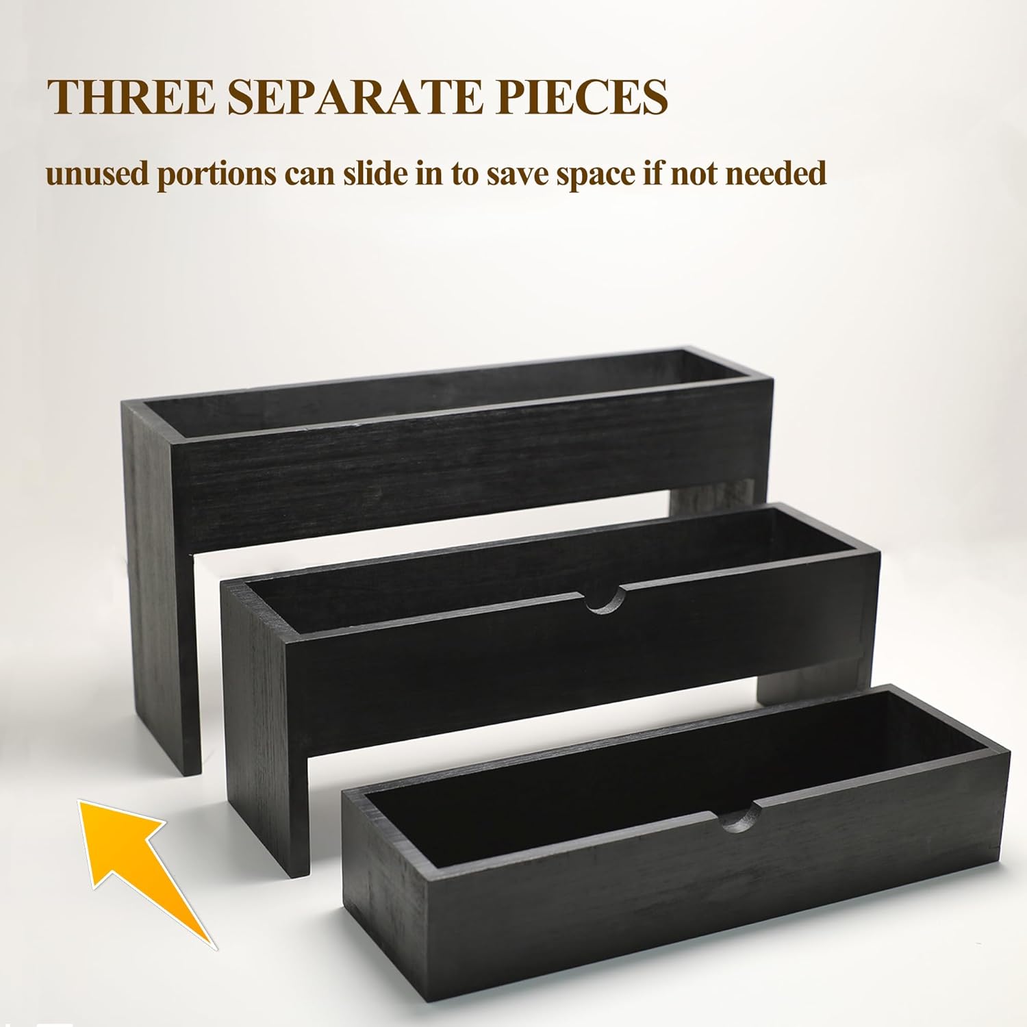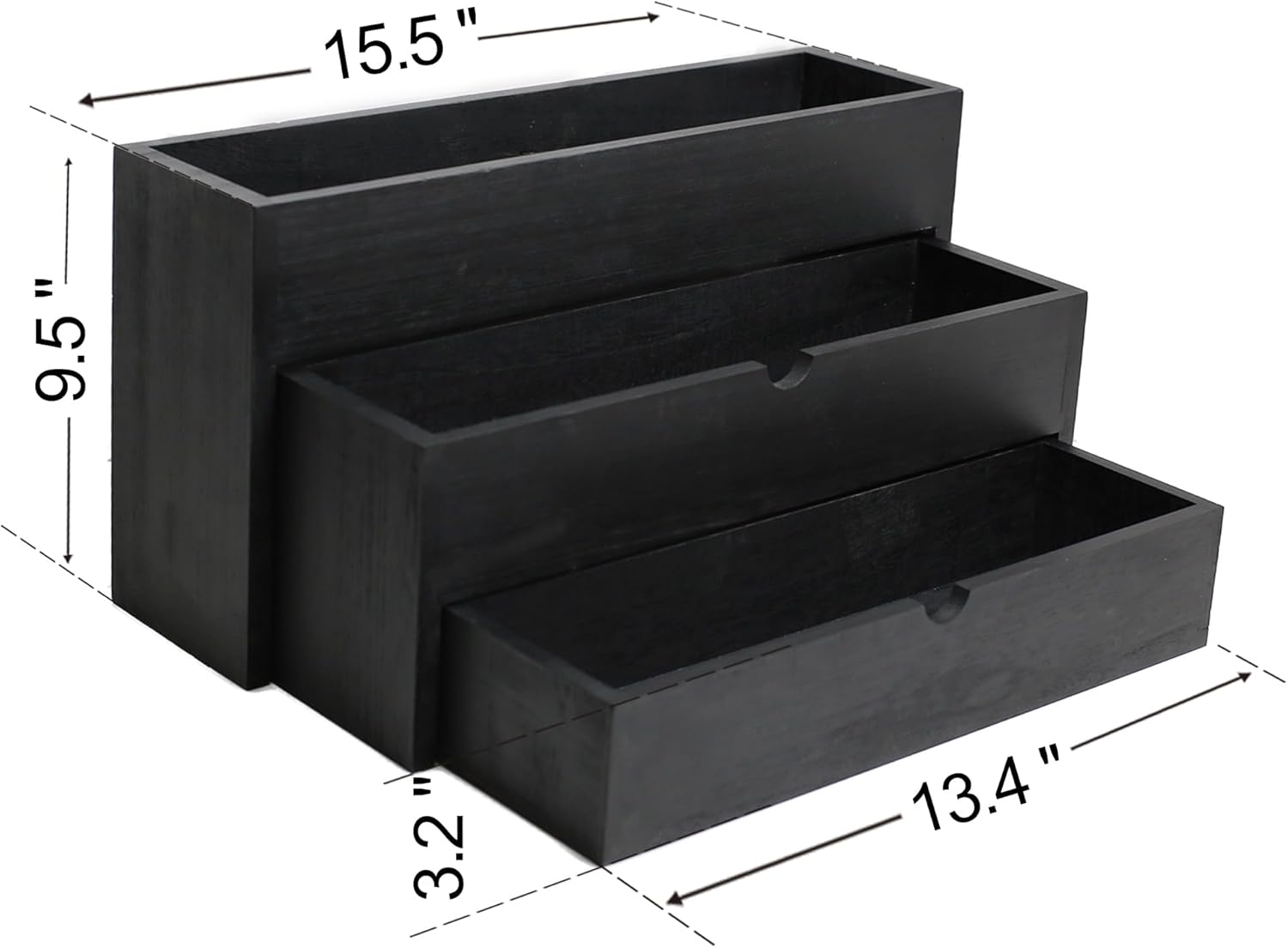 Black Wood Coffee Syrup Rack Organizer, 3-Tier Separated Bottle Holder for Coffee Bar, 12 Bottle(750ml) Storage Stand for Syrup, Wine, Dressing