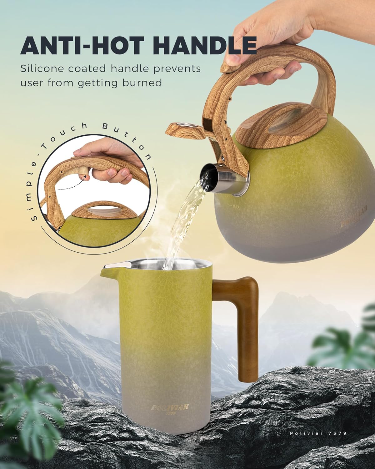 - Audible Whistle: The whistle of this kettle will grab your attention while you are focusing on other issues such as housework or games at the same time. Simple and time saving with no stress.