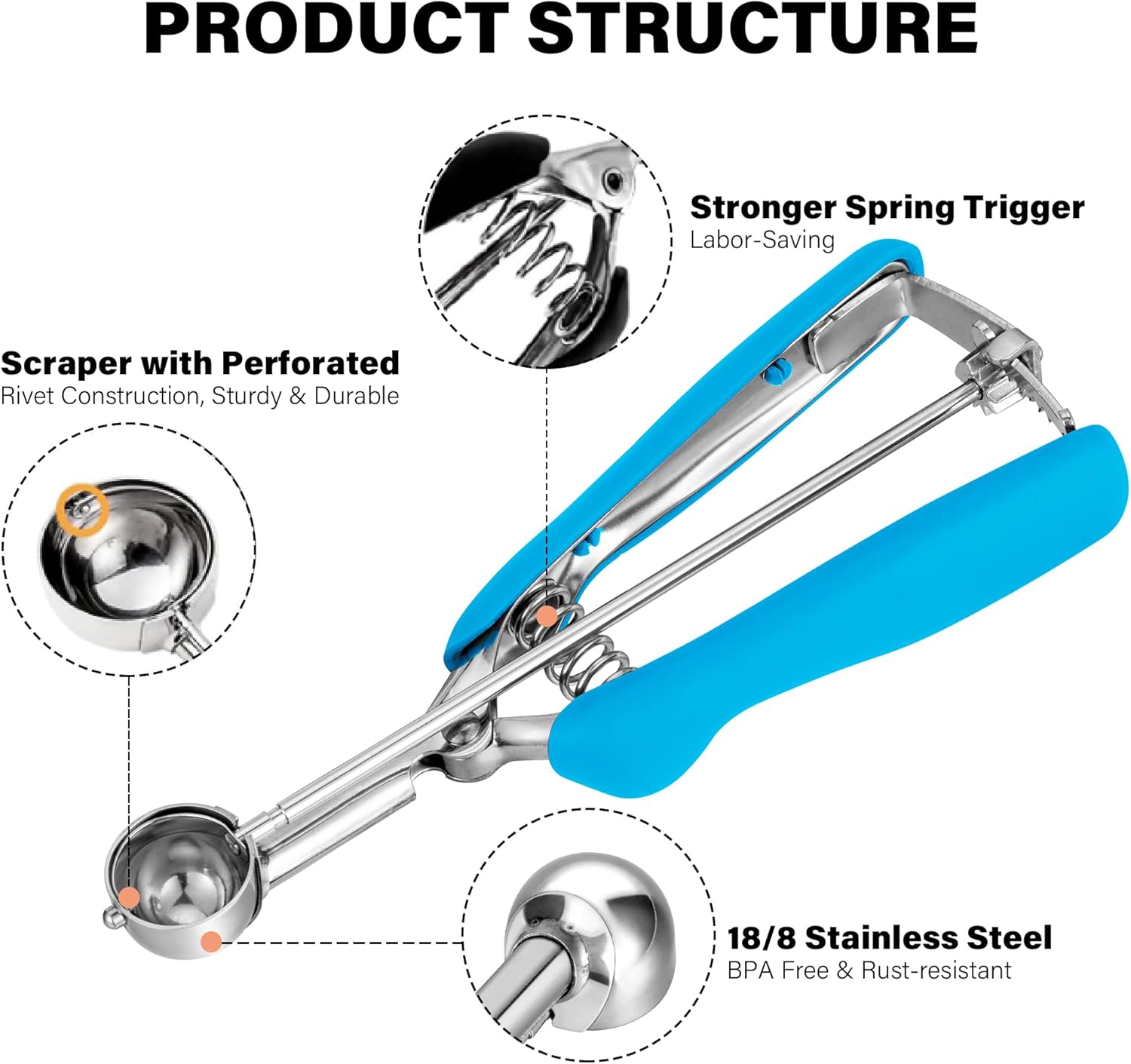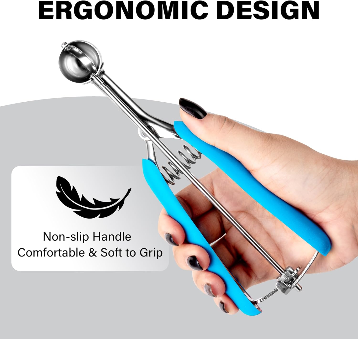 - 🍧【Our Ice Cream Scoop is Ready For All Your Daily Needs】 If you are planning to make delicious cookies, this small cookie scoop will fulfil your desire! It is also a great choice that can be used as an ice cream scoop, melon baller scoop, cupcake scoop, meatball scoop, or even as a measuring spoon. With this multifunctional scoop, let your meal prep work can be done efficiently. Ideal for use at home, restaurants, dessert shops and ice cream parlours.