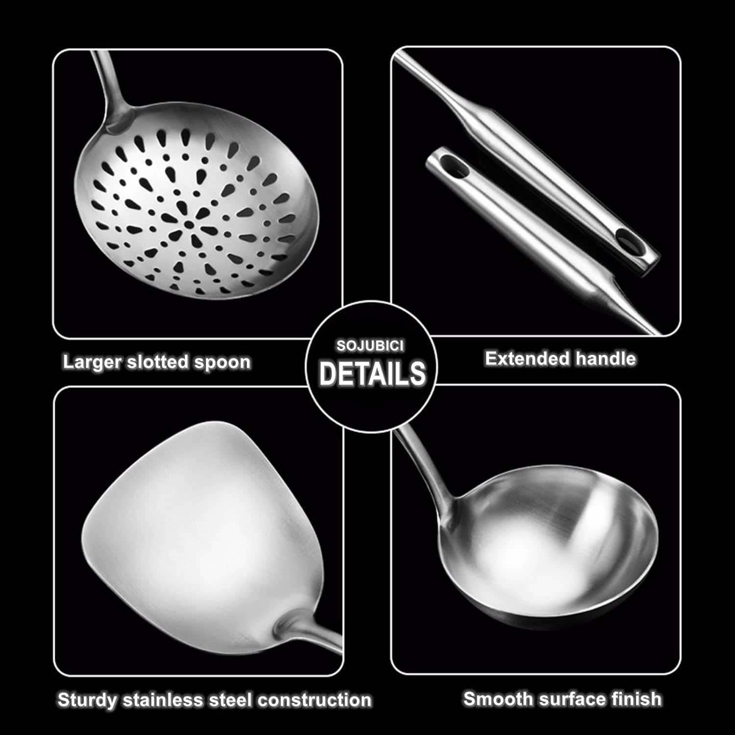 - 🌿Thoughtful Design for Precision Cooking: Each utensil is designed for ergonomic comfort and functional efficiency. The flat spatula and slotted spoon are adept at flipping and draining, while the serving spoon and ladle allow for graceful portioning and ladling. Experience precision and control in every move.