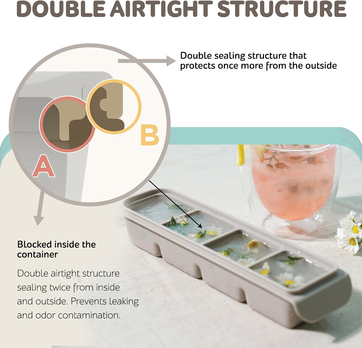 4 Section-1.7oz Gray 100% Food Grade Silicone Ice Cube Tray Food Container with Airtight Locking Lid, Fruit Vegetable Purees, Breastmilk Storage for Baby & Toddler Food | BPA Free Korea Made