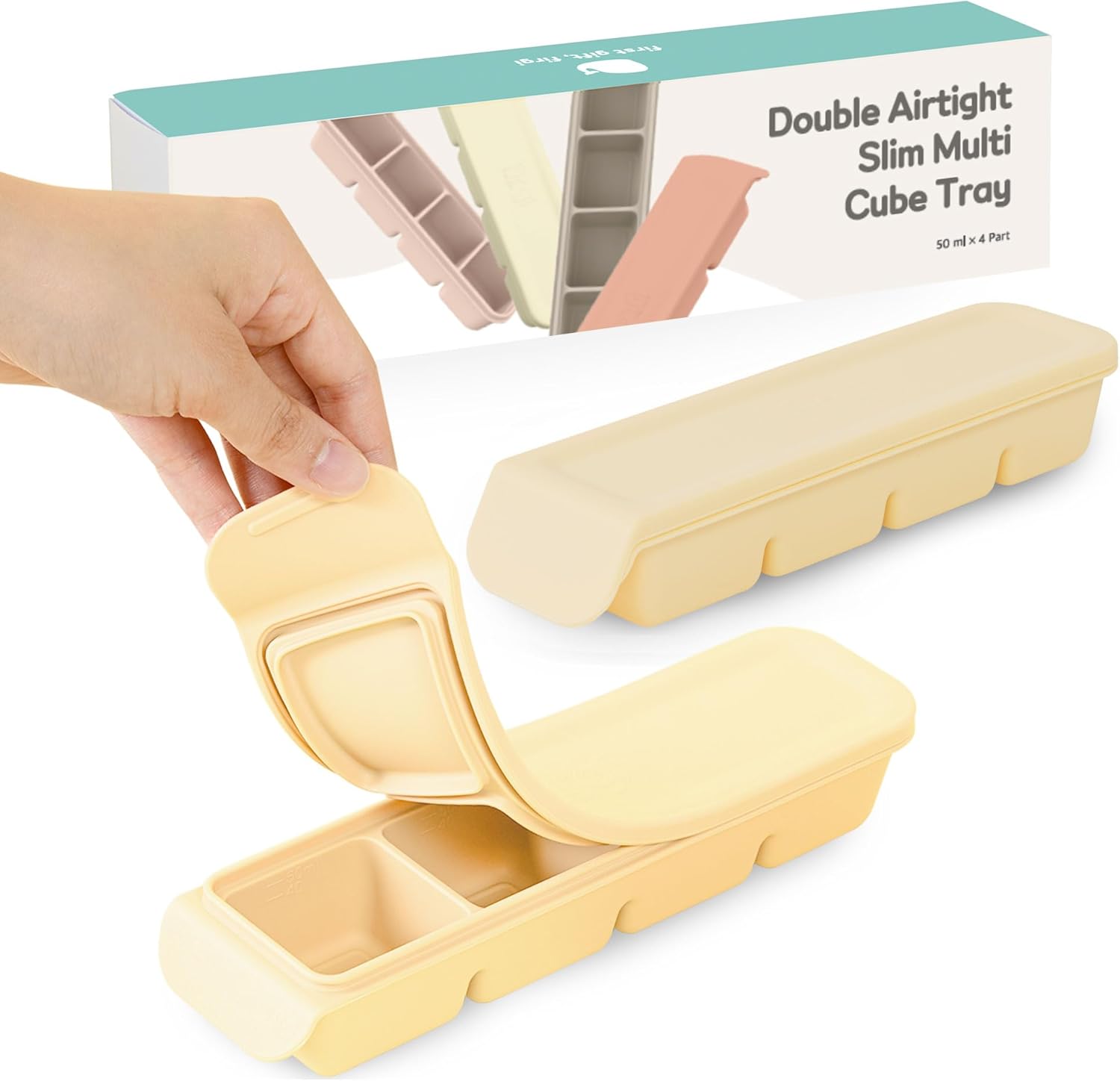 Silicone Freezer Trays with Lid,1.7oz 4 Section - Leak Proof Silicone Freezer molds for Homemade Baby Food Breastmilk, Purees, Vegetables, Baby Food Jars Ice Tray with Lid BPA Free Mix Beige