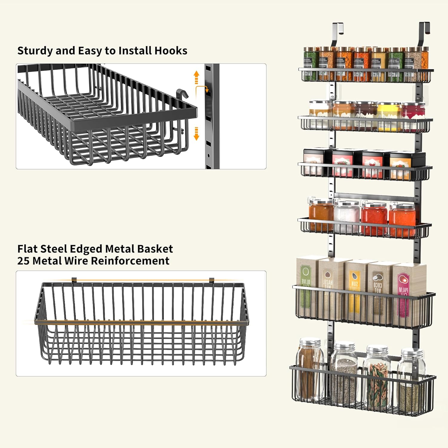 Moforoco 6-Tier Over The Door Pantry Organizer, Pantry Organization and Storage, Black Hanging Basket Wall Spice Rack Seasoning Shelves, Home & Kitchen Laundry Room Bathroom Essentials accessories