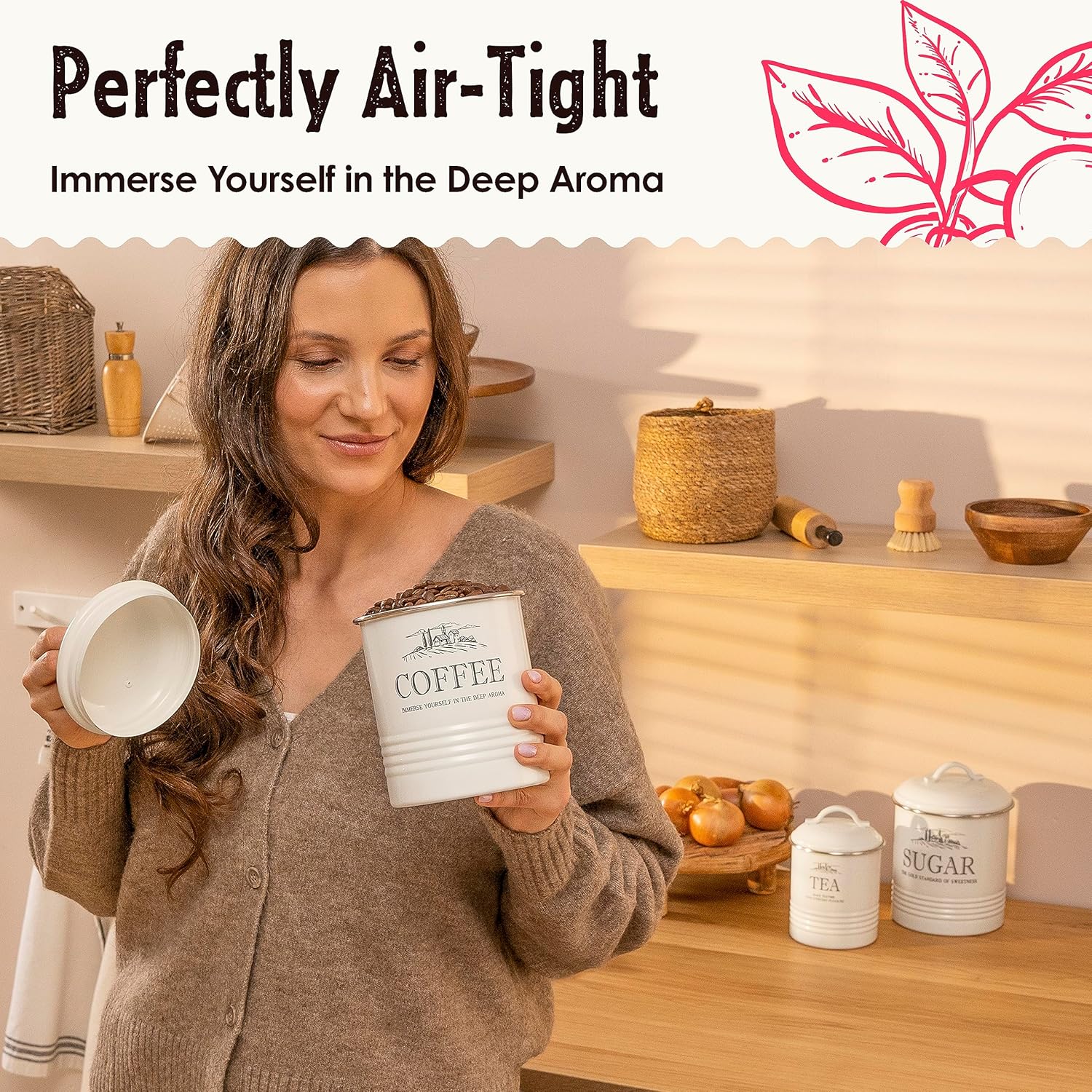 Kitchen Canisters for Countertop - Set of 3 - Airtight Coffee Tea Sugar Container Set - Country Rustic Farmhouse Canisters Sets for the Kitchen