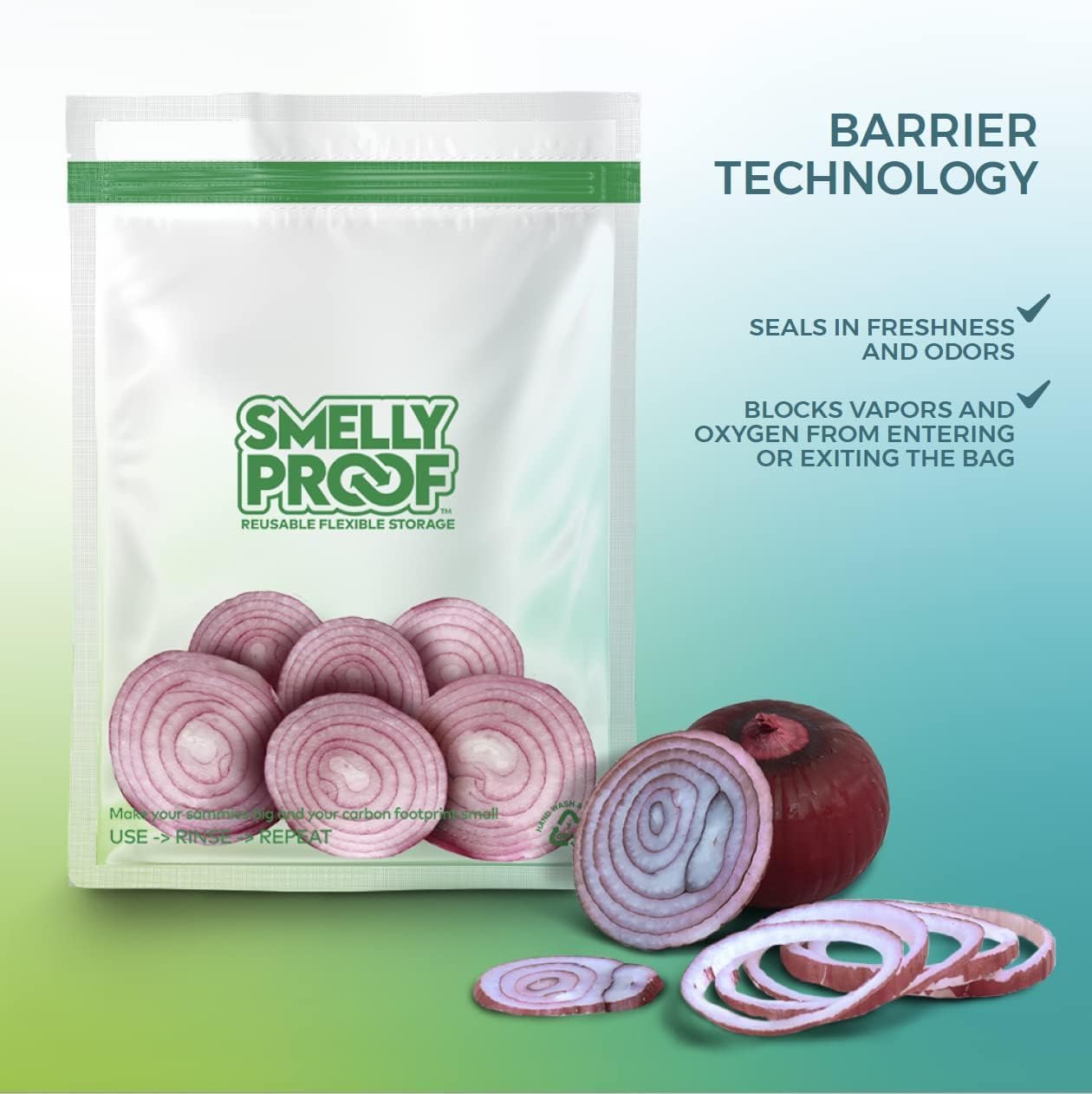 Reusable Food Storage Bags Designed & MFG by Smelly Proof, USA MADE, Dishwasher-Safe, Easy-To-Clean, PEVA & BPA FREE, Clear FLAT Large 3-mil Thick, 8.5" x 10", Quart Size Bags, 15-Bags