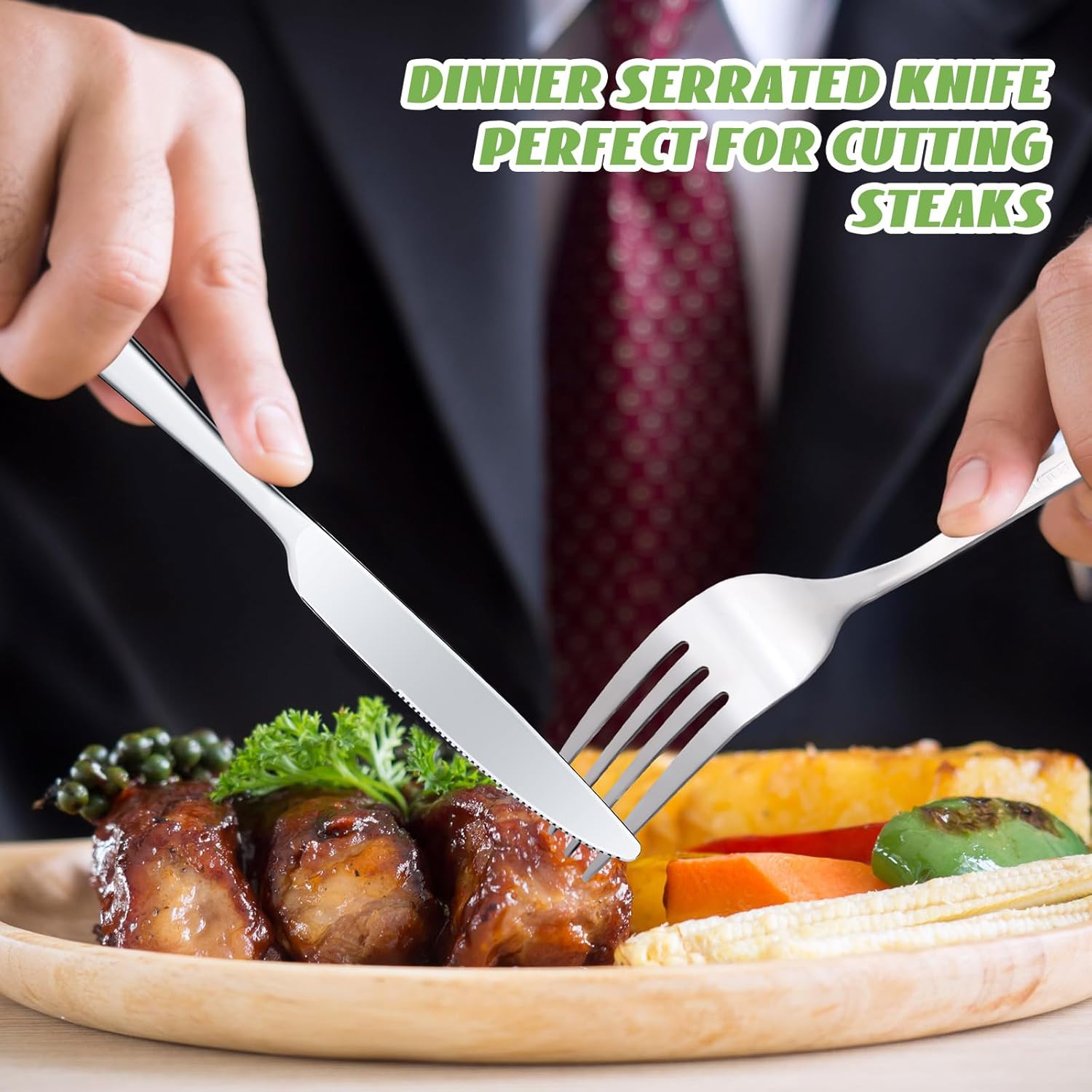 - Quality Material: the forks and knives set is crafted with quality stainless steel; The durability of this material ensures that the utensils will not warp, discolor, or bend easily, which adds longevity, at the same time, it is also dishwasher safe, bringing you convenience