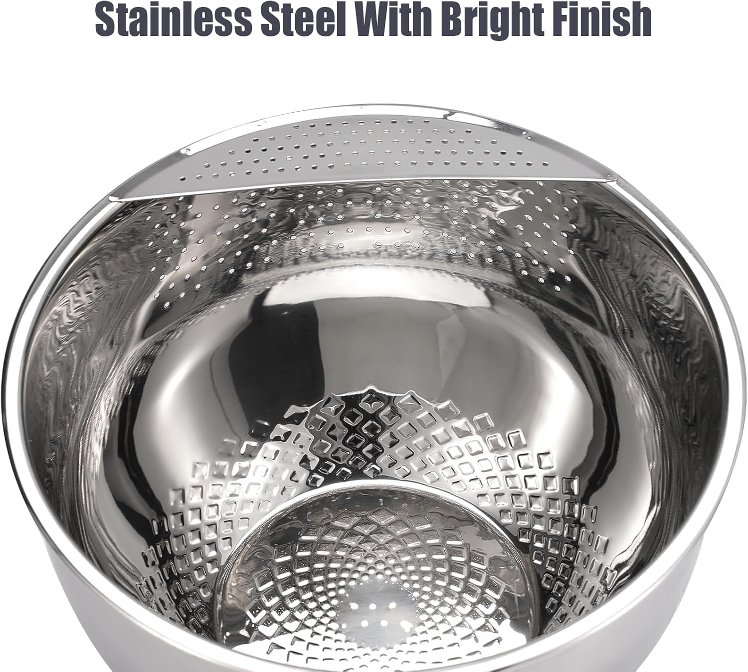 - Quick Drainage Colander Strainer: Equipped with fine drainage holes on the side, this stainless steel washing bowl ensures quick water drainage while preventing food from falling through.