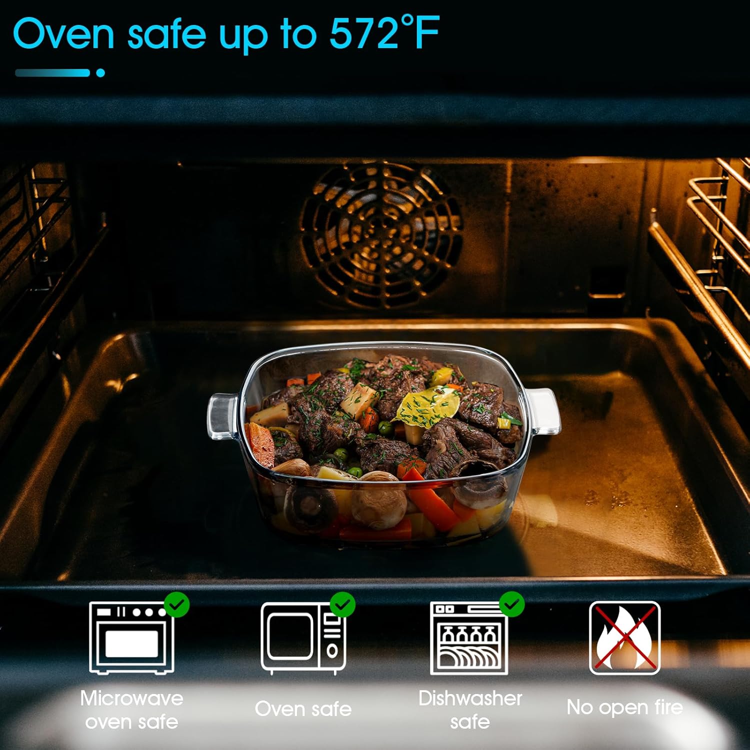 - Microwave, Oven, Freezer, Dishwasher Safe: This glass casserole dish is oven safe up to 482°F. Dishwasher safe or hand wash for quick, easy cleanup. Each casserole dish with lid will be a powerful helper in the kitchen. NOTE: No direct fire or induction cooker.