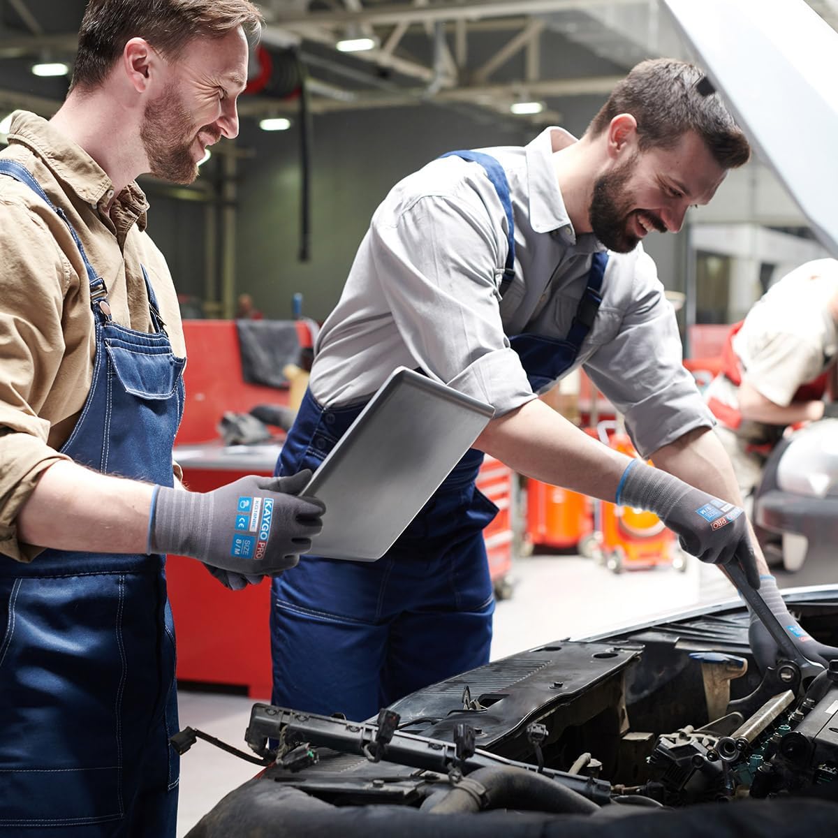 KAYGO Safety Work Gloves MicroFoam Nitrile Coated- 3 Pairs KG18NB, Seamless Knit Nylon Glove with full fingers Touchscreen, Ideal for Automotive, Home Improvement, Black, 2X-Large