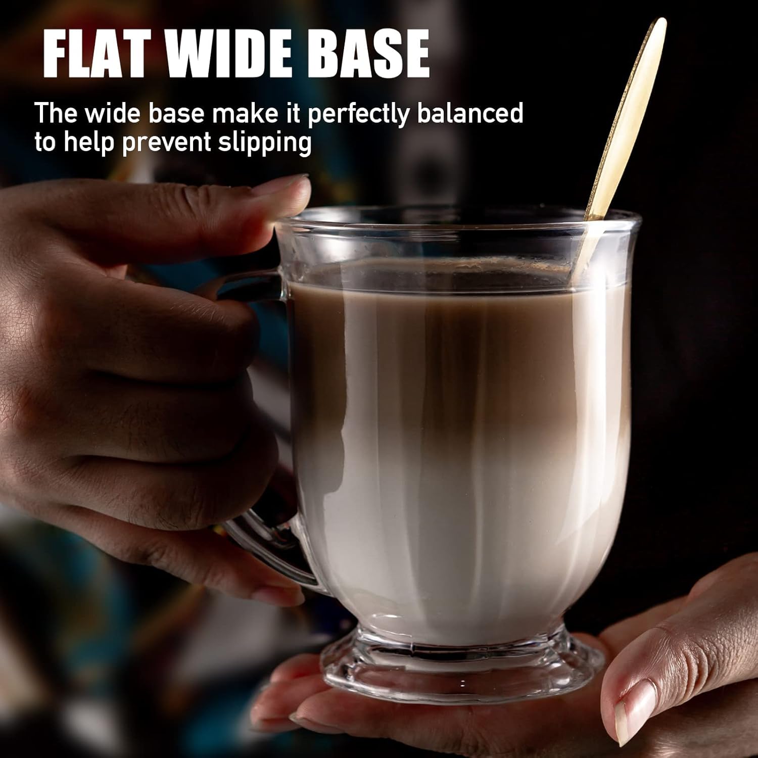 - 16 Ounce Super Big Glass Coffee Mugs 4.3" Wide x 5.3" Tall, Coffee mugs for restaurants offices homes and picnics camping These mugs are crystal clear,Durable weight and the huge size.Can be used for Fruit Teas, Capucinno cups,Lungo cups,Macchiato,Latte,Espresso cups