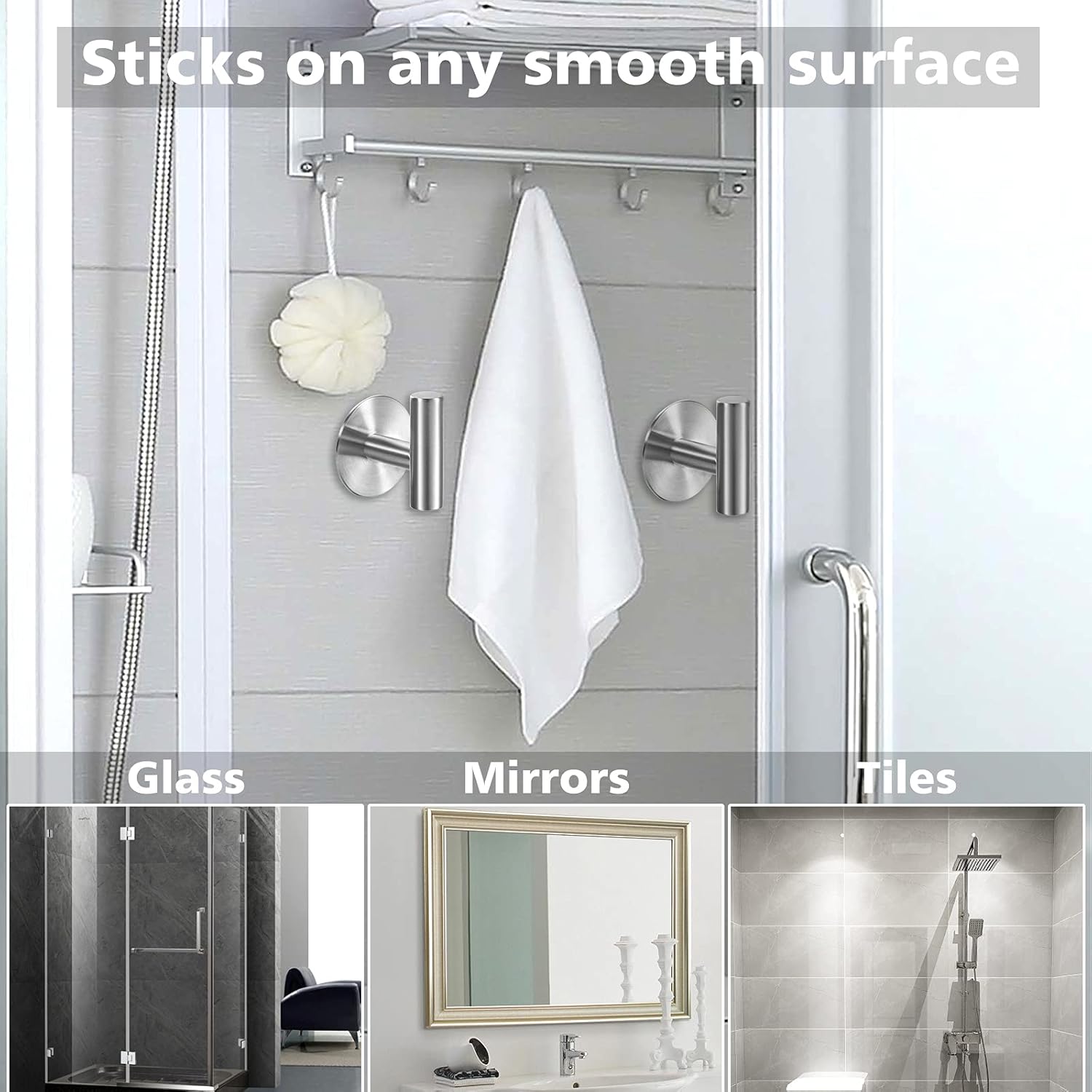 - [High-Quality Material]: The Towel hook is made of high-quality stainless steel. It is long-lasting, rustproof, and waterproof. Suitable for your bathroom, bedroom, living room, kitchen, outdoor shower, basement, laundry room, office, and most kinds of room decor