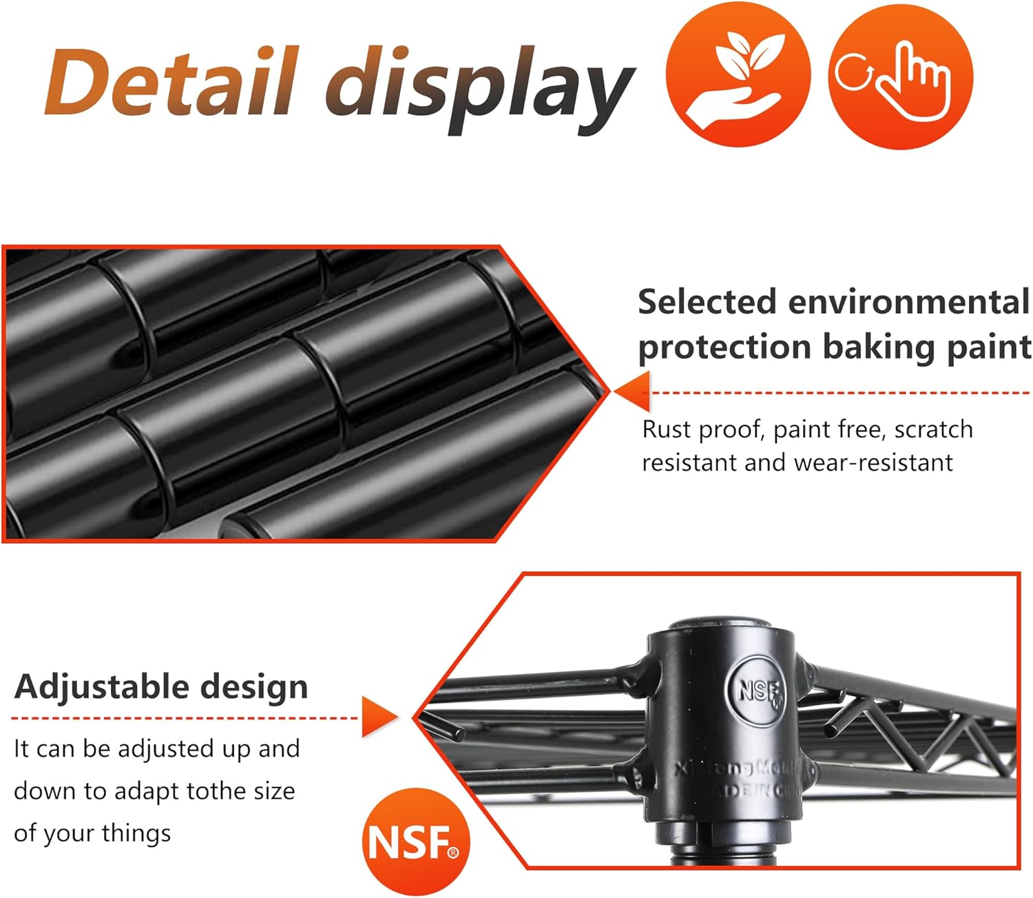 - 5.Easy Assembly for Effortless Setup: No more complex instructions or frustrating setups. These storage shelves are designed for easy and quick assembly. Minimal tools and effort required, allowing you to enjoy your new storage rack in no time. Save energy for organizing your belongings, not assembling the wire shelf.