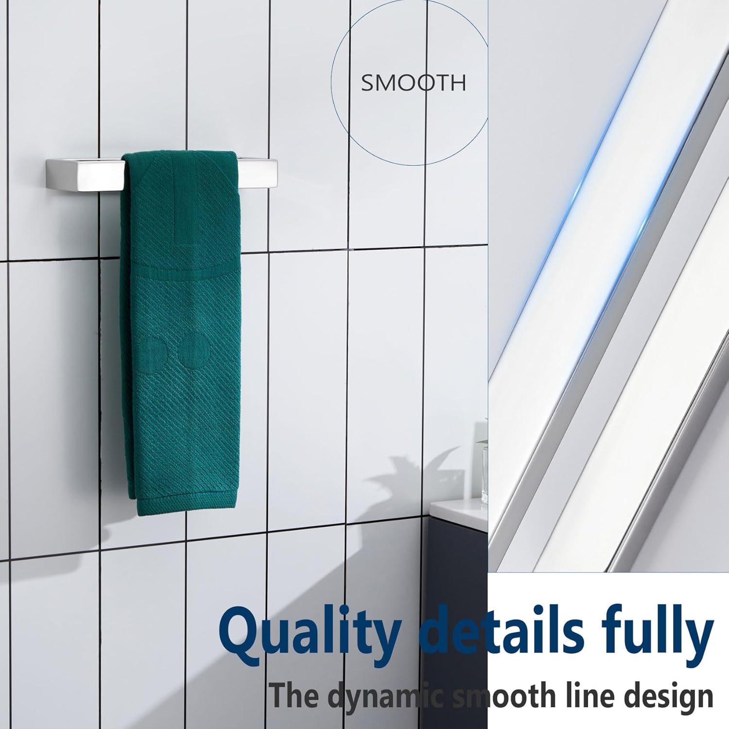 - ◄ KOKOSIRI Design ► The polished chrome towel bar is designed with the unique rectangle shape. It will bring the modern look to your bathroom/ kitchen/ office/ balcony/ toilet/ washroom