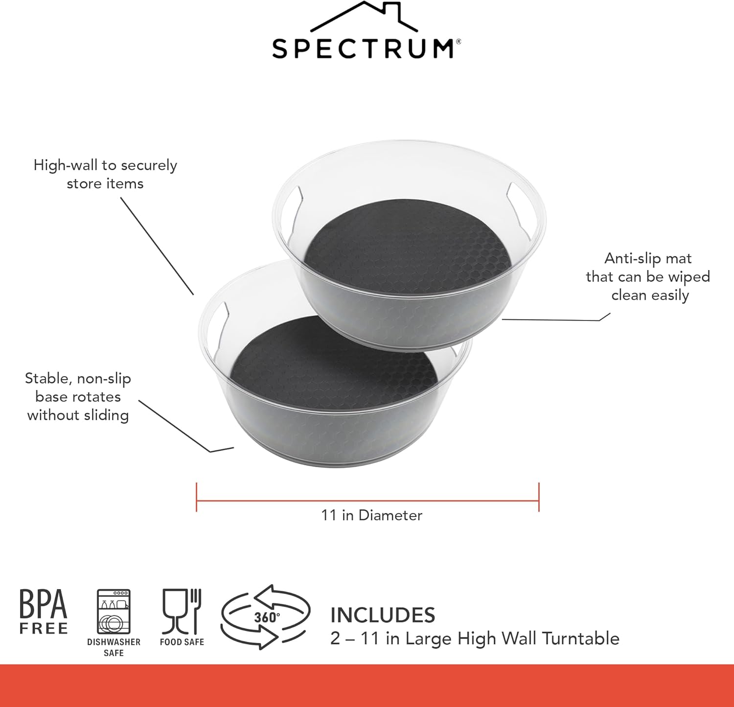 Spectrum Extra Large High Wall Turntable 12.25 in Pack of 2 Charcoal Gray XL Tall Lazy Susan Rotating Organizer for Kitchen Countertop Bath Cabinet Refrigerator Pantry Shelf Under Sink Organization