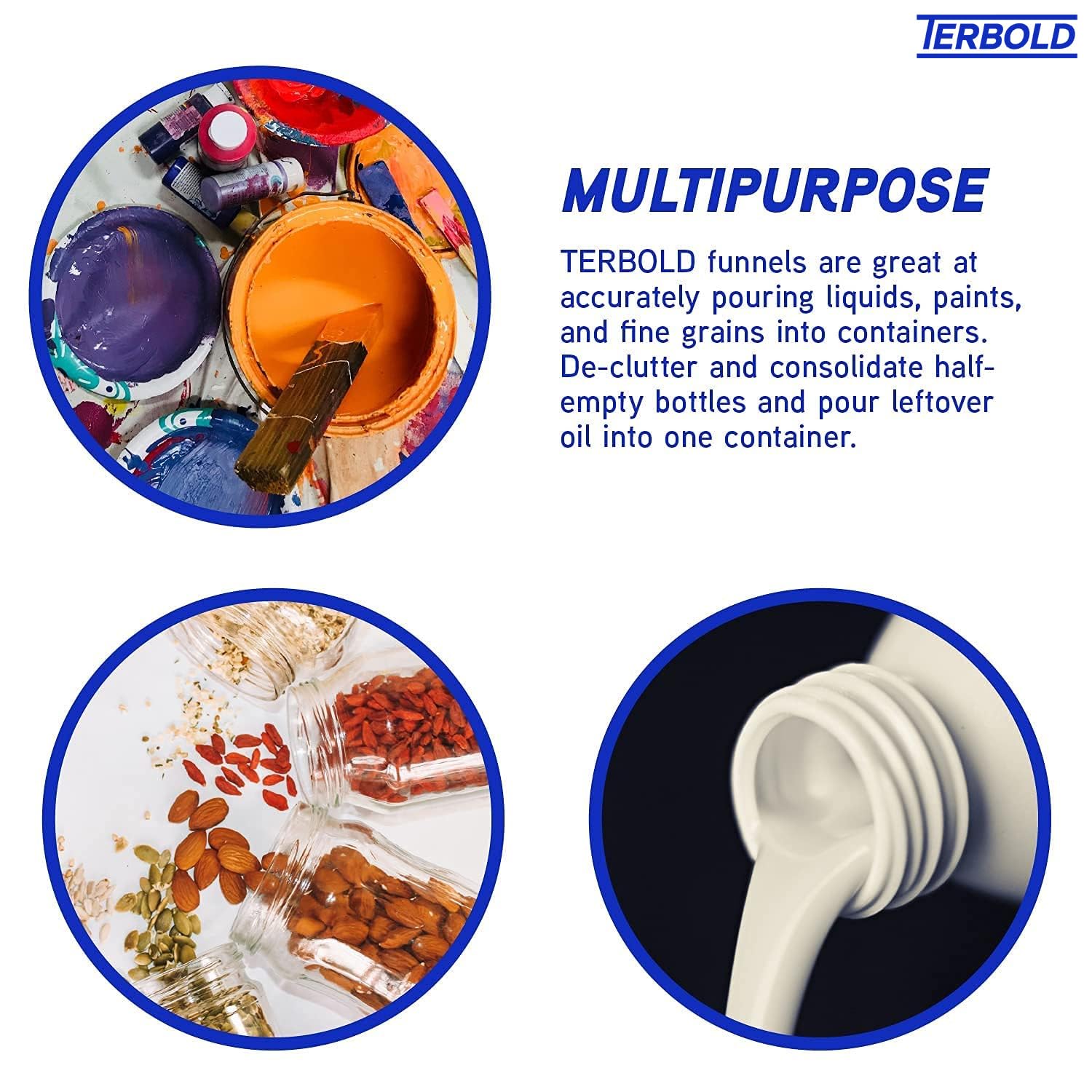 - NESTING DESIGN | All four funnels nest together, so the set requires minimal room in your kitchen drawer, utility shelf, or toolbox