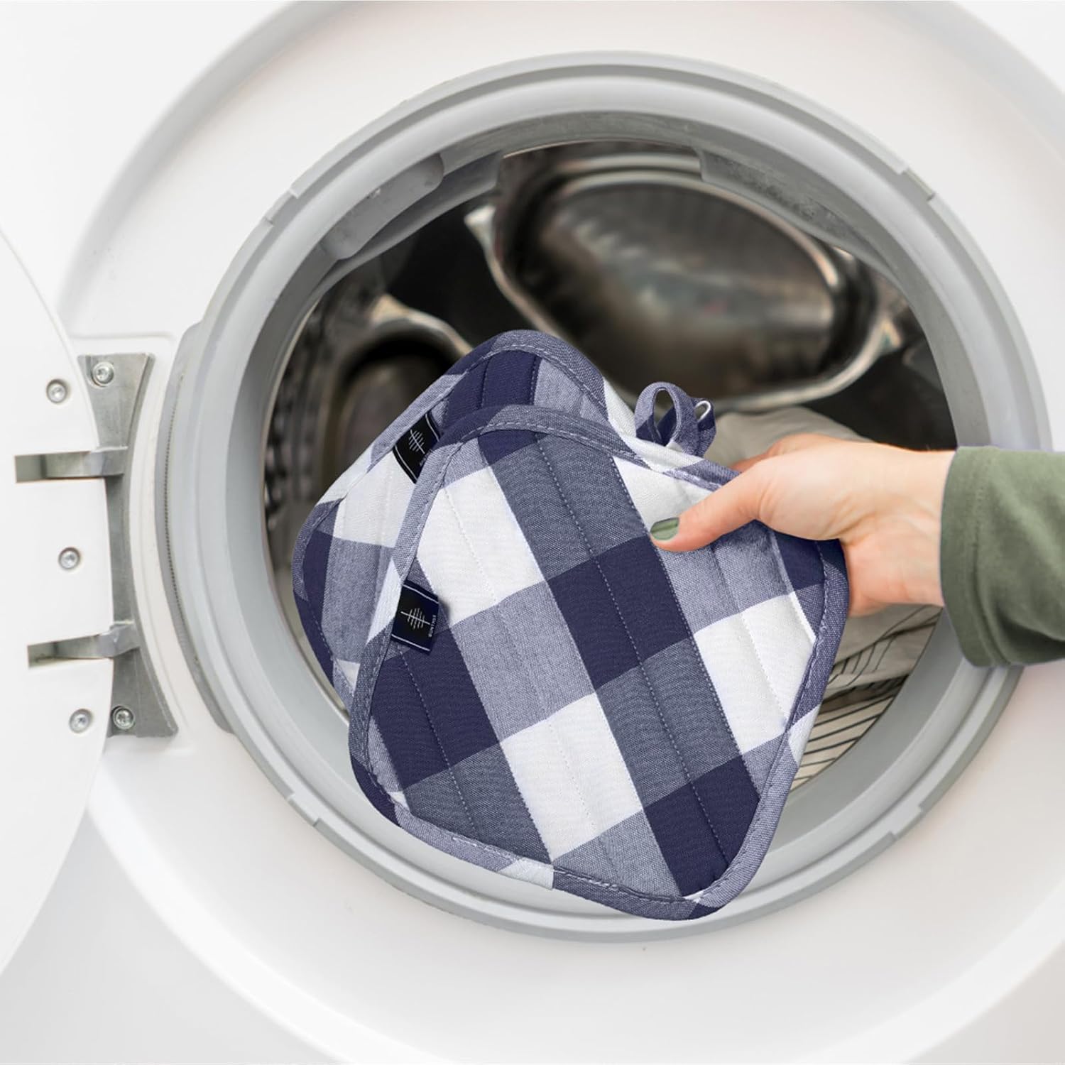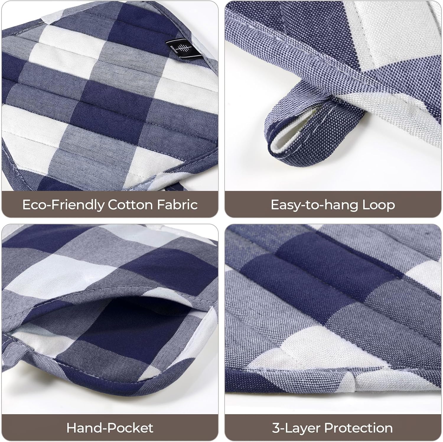 - [Kitchen Decor] These pot holders come in a variety of stylish and classical plaid designs, adding a touch of elegance to your kitchen decor. The loop on each pot holder allows for easy hanging storage, keeping them within reach whenever you need them.