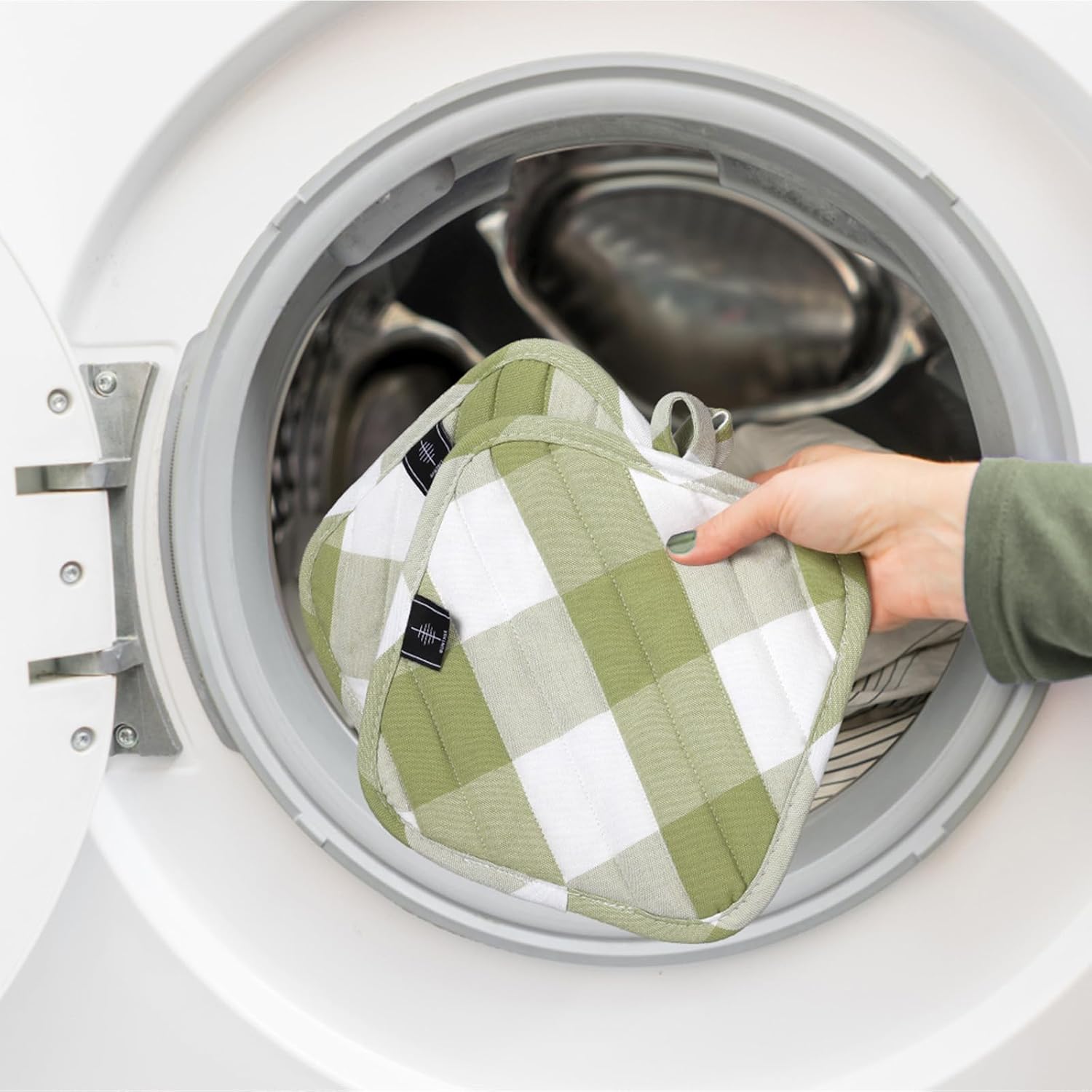 Cotton Pot Holders for Kitchen Heat Resistant Potholder Hot Pads Trivet Coaster Non-Slip Potholders Set for Cooking and Baking (2, Green Plaid, Square,8.27 in²)