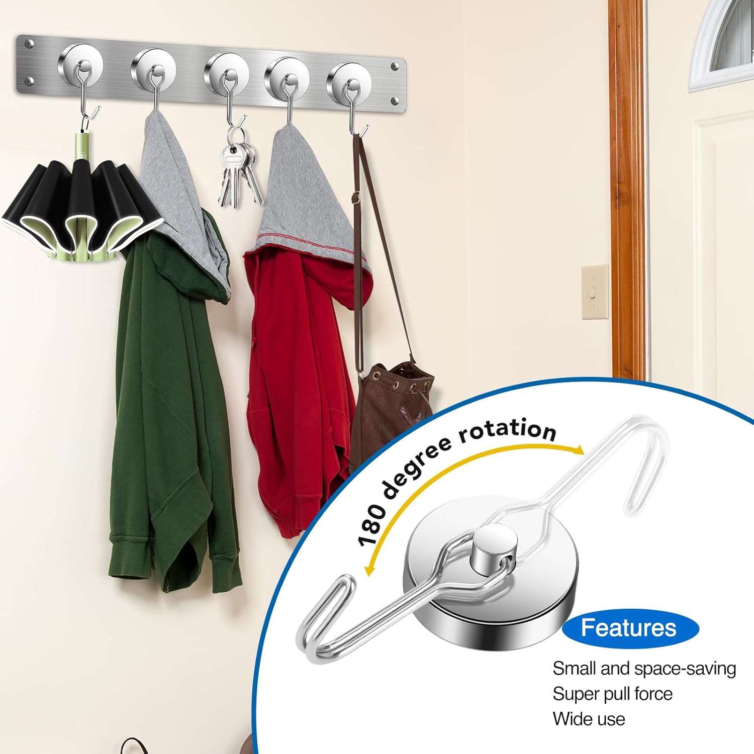 - 【 Widely Applied 】 Sturdy magnets hooks, simple structure, convenient for installation and use. Used for fixing, connecting and hanging cups, ironware, tools and other objects (hats, keys, towels). Heavy-duty magnetic hooks are also widely used in grills, cruise cabins essentials, refrigerators, kitchens, workplaces, offices, garages, indoor and outdoor environments, etc.