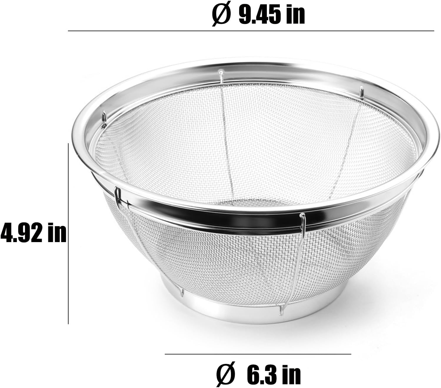 - Pro-Grade Mesh Colanders: Stainless steel mesh colanders built for pro-level sifting and straining.Sturdy, mirror-finished rims for durability.