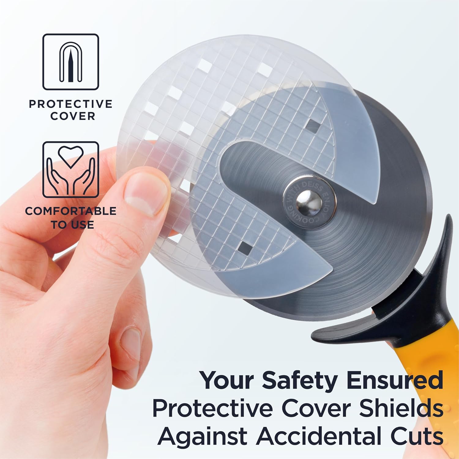 - ✅ERGONOMIC DESIGN, COMFORTABLE GRIP - The circular saw pizza cutter has a non-slip handle with a rubber grip that feels good against your hand without being squishy or slippery when wet. Easy fit for all hand sizes and a perfect choice for people with Arthritic hands. The built-in finger guard protects your hands from both the pizza cutter stainless steel blade and the heat.