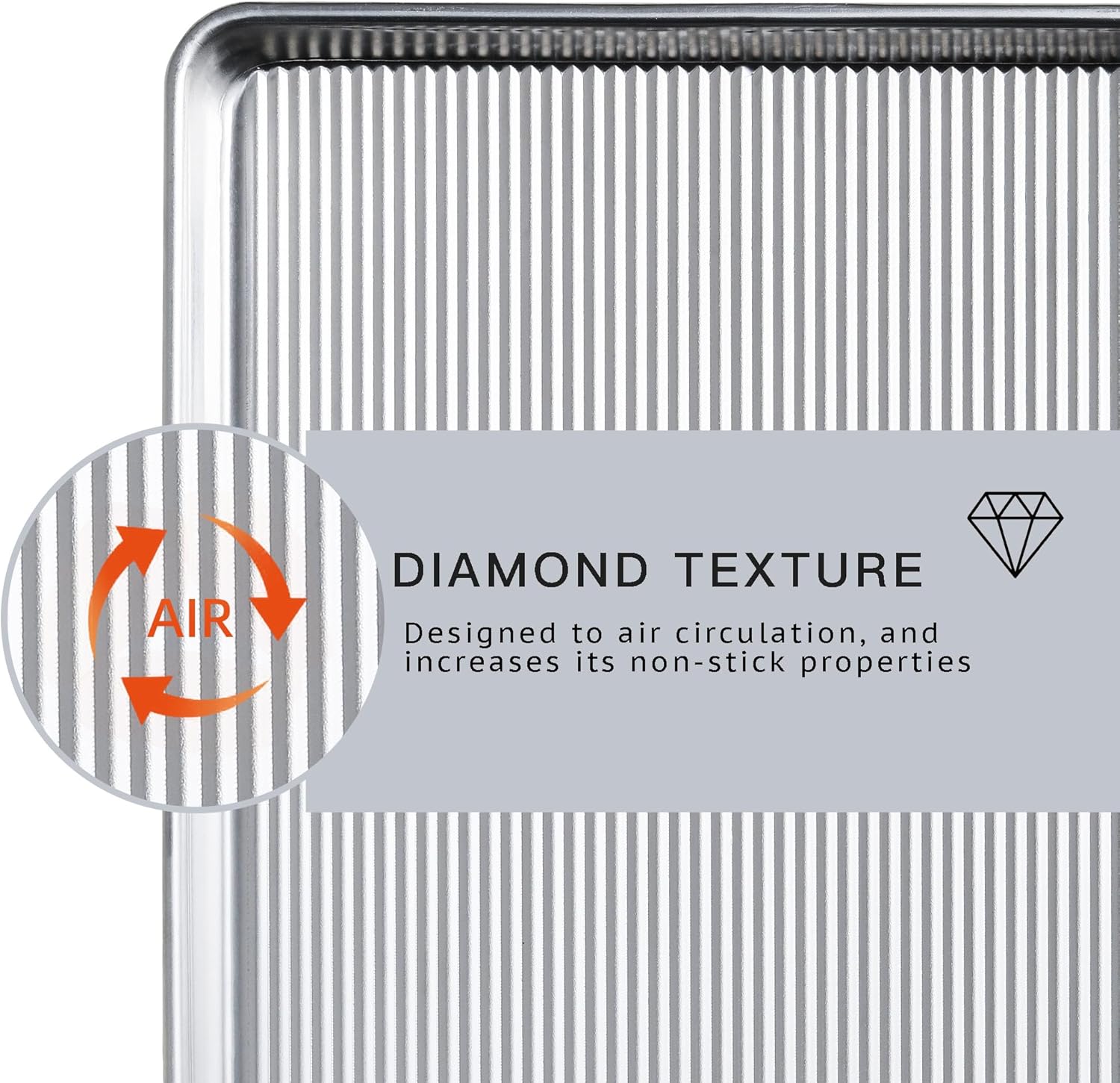 - NO MORE BURNT FOOD - The cookie sheet pan set has a diamond texture on the base facilitates air circulation, increases its non-stick properties, and helps heat evenly and release quickly. Thickened full sides ensure that the juice does not overflow and clean up easily without sticking or scratching.