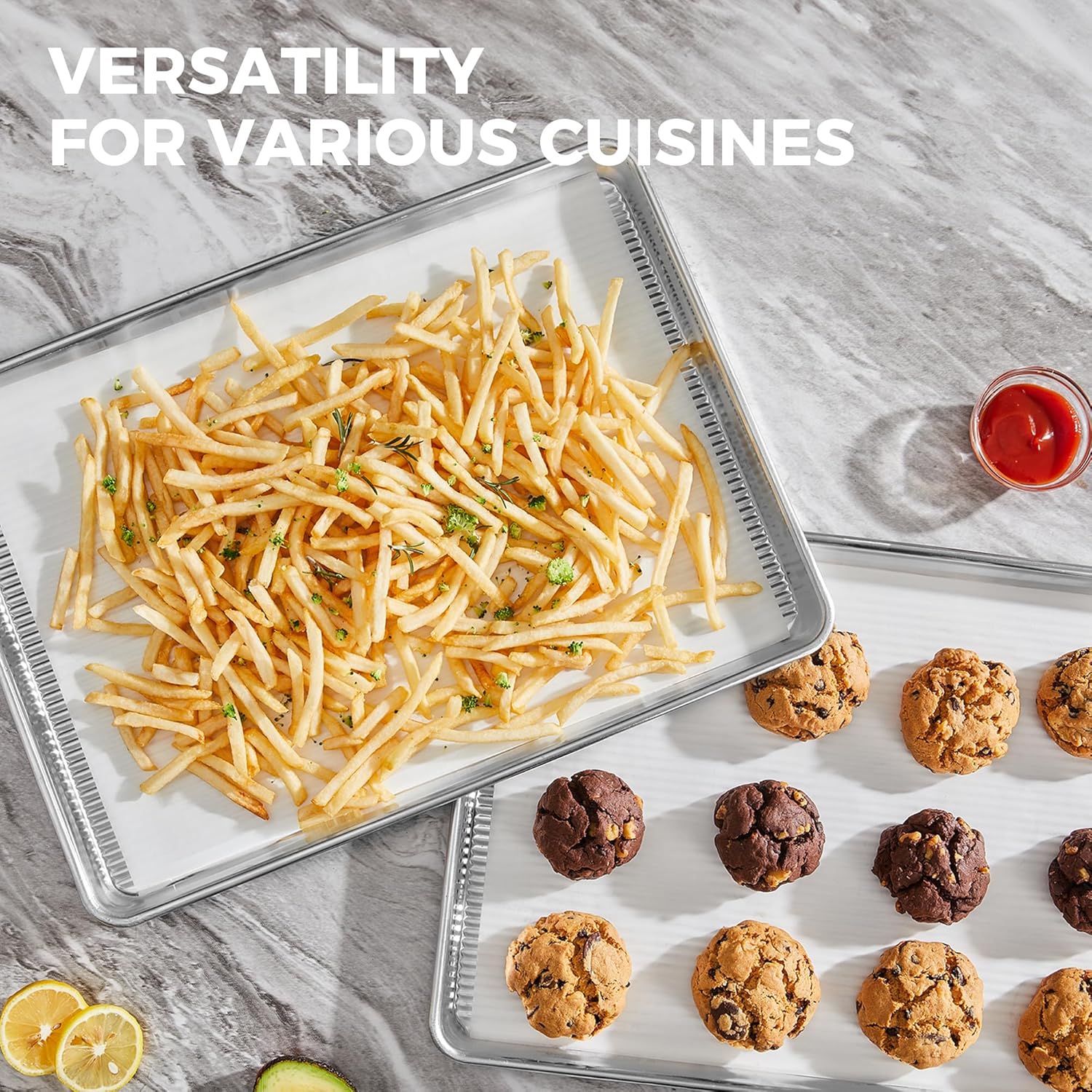- Size : Aluminum Half Sheet+50pcs Parchment Paper