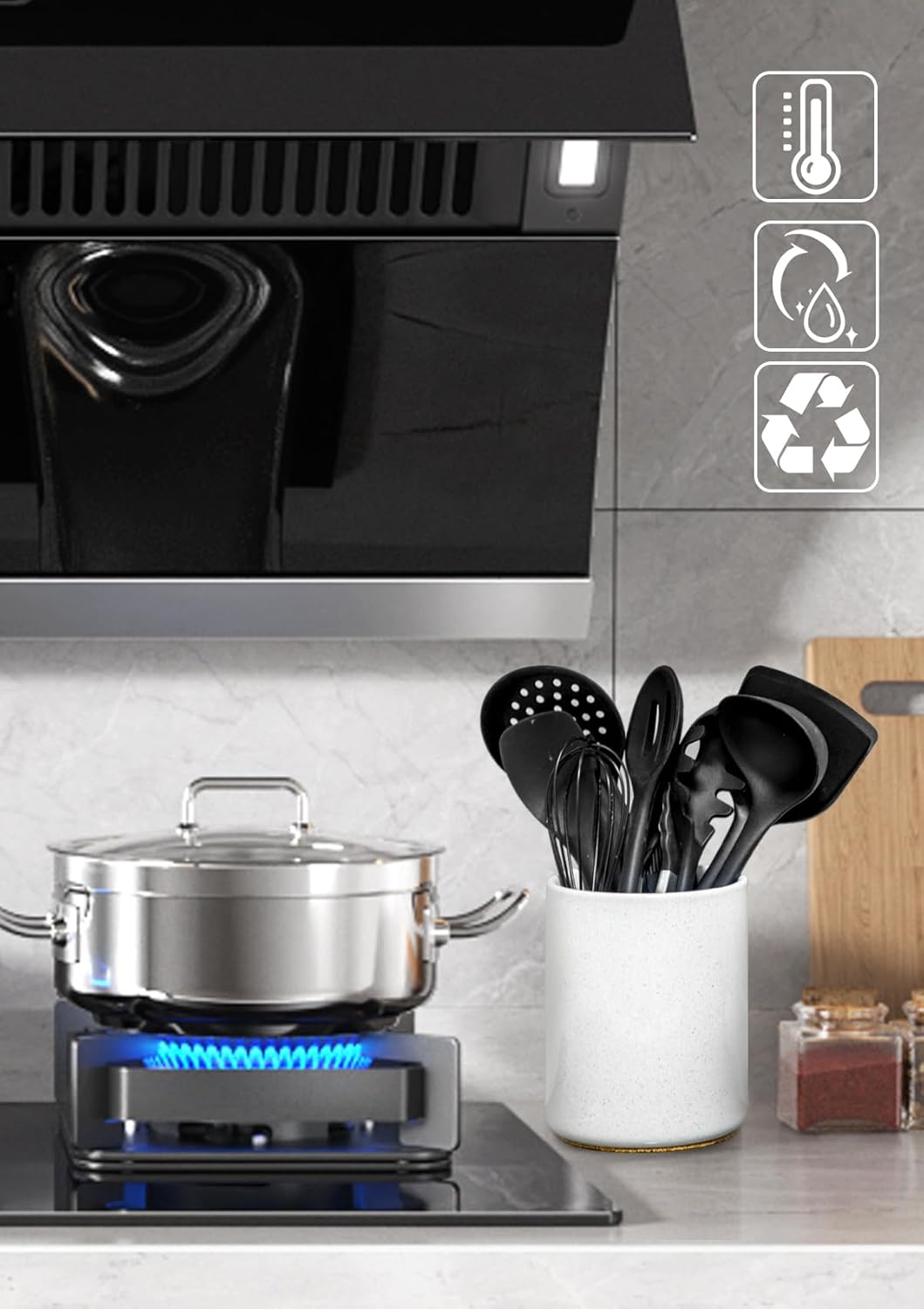 - -MULTIPLE FUNCTIONS: This ceramic utensil holder can serve as many ways, not just for storing kitchen utensils, but also for holding brushes, flowers, plants, and even can be used to cool wine.