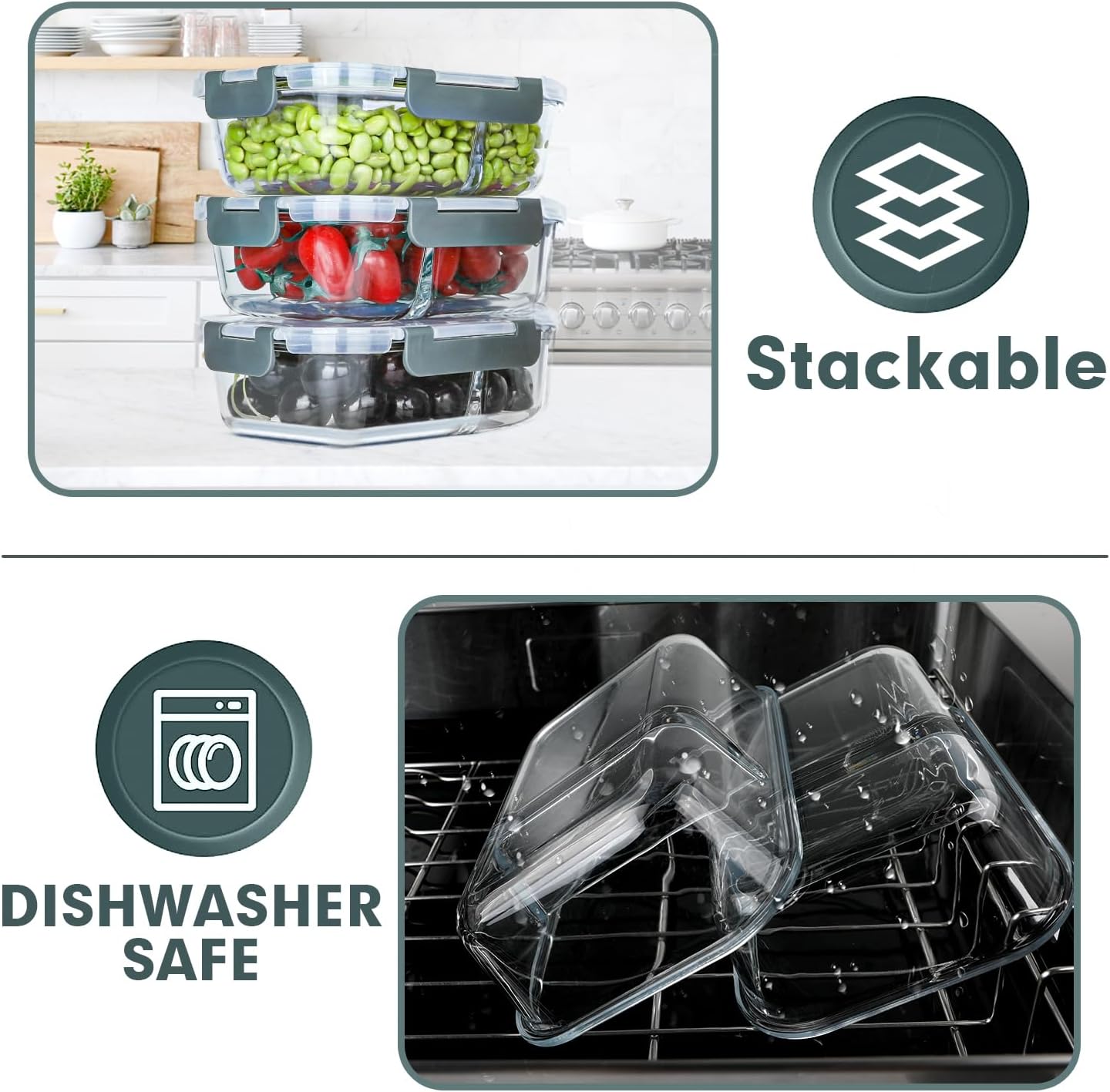 - HIGH QUALITY GLASS MATERIAL: Glass meal prep containers are made of high quality borosilicate glass, for oven, microwave, dishwasher and freezer. Stronger than cheaper glass food storage containers, food can be stored in glass containers directly after cooking. The containers are versatile to meet your everyday food storage needs, perfect for prep meals at home or whatever you need for the occasion.