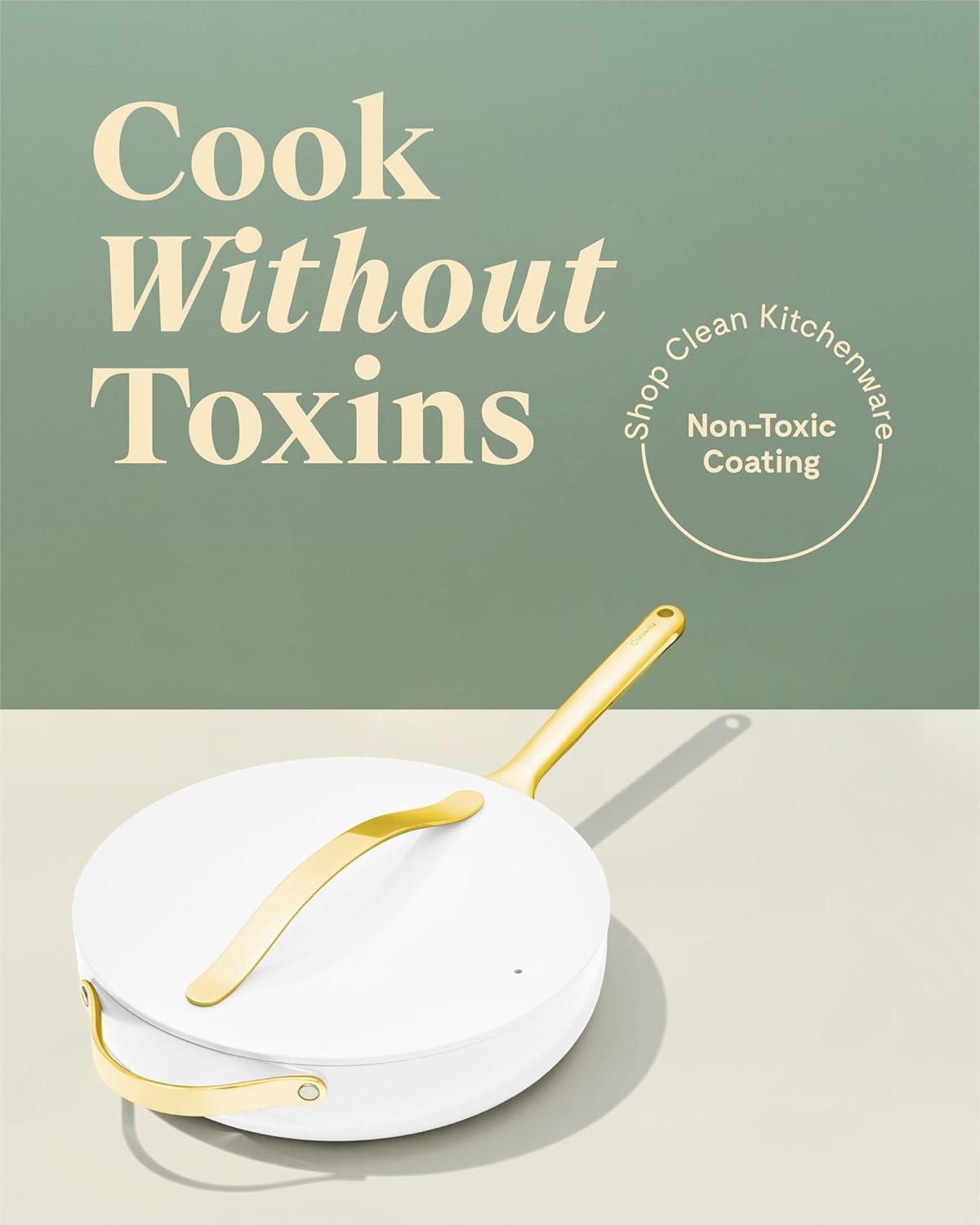 Caraway Nonstick Ceramic Sauté Pan with Lid (4.5 qt, 11.8") - Non Toxic, PTFE & PFOA Free - Oven Safe & Compatible with All Stovetops (Gas, Electric & Induction) - White