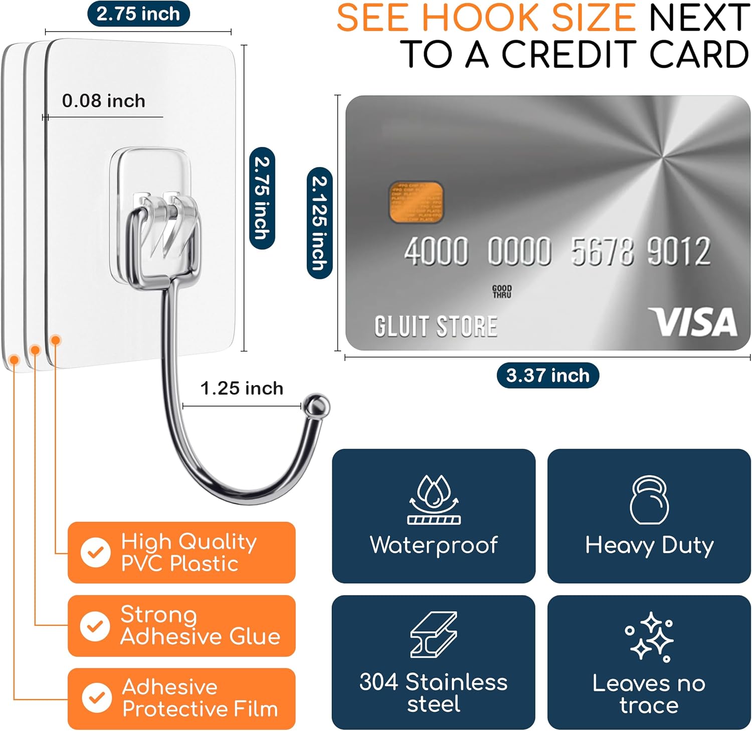 GLUIT Adhesive Large Wall Hooks for Hanging Heavy Duty 22 lbs Hook for Walls No Damage (40 Large Hooks)