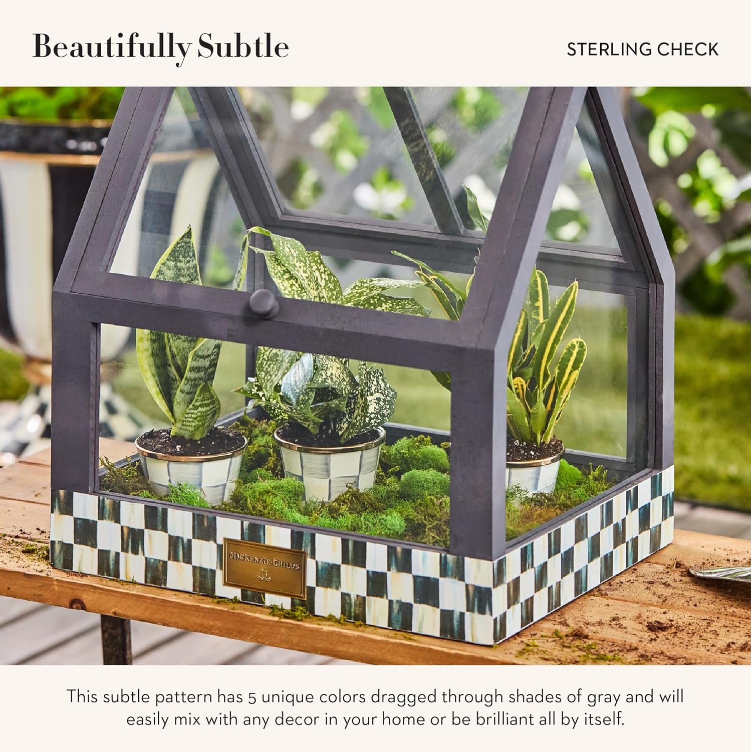 MACKENZIE-CHILDS Enamel Herb Pots, Small Plant Pots for Herbs or Flowers, Set of 3, Gray-and-White Sterling Check