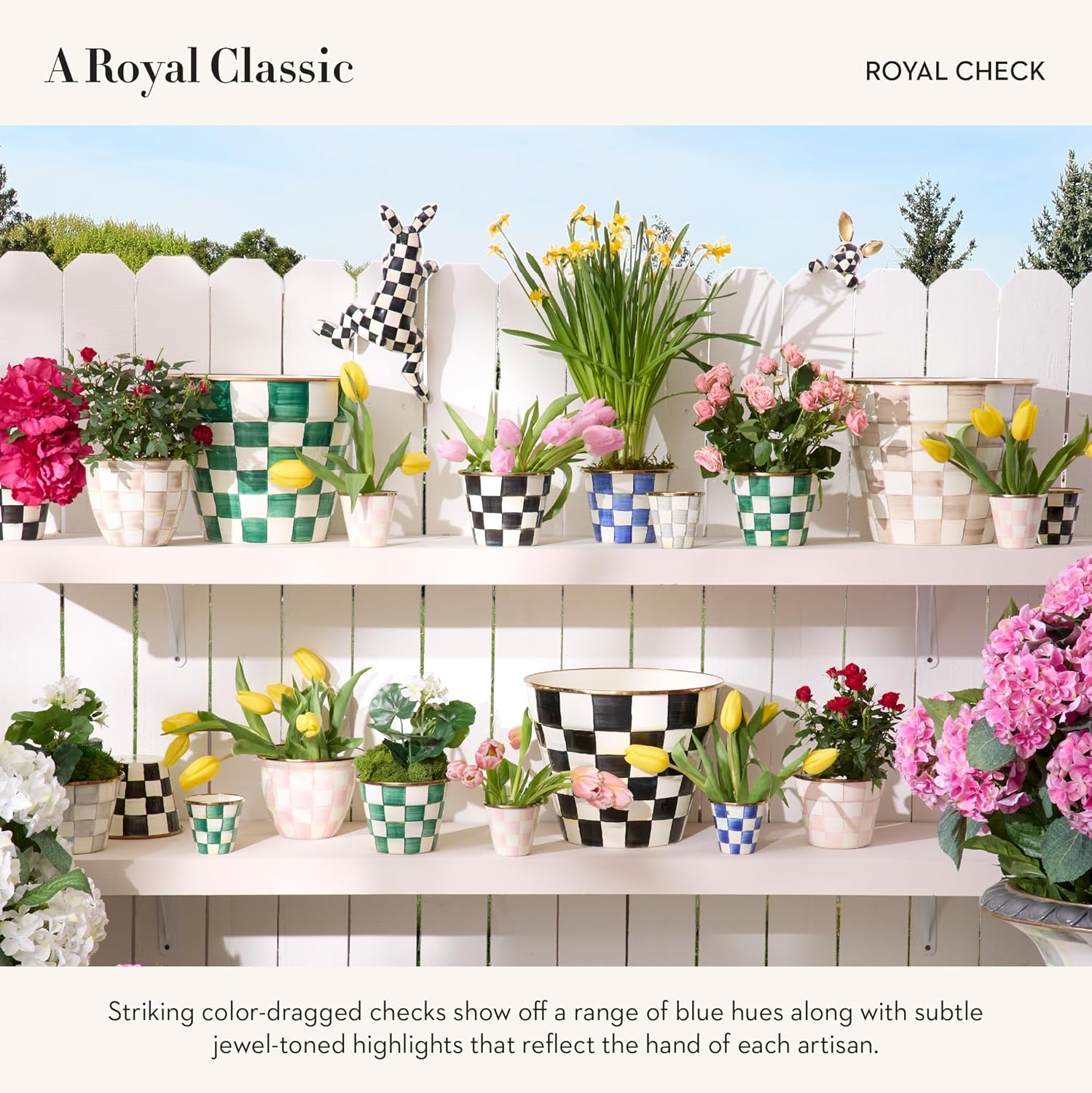 - INDOOR & OUTDOOR PLANTER POTS: This trio of petite Royal Check Enamel Herb Pots is hand painted with blue-and-white color-dragged checks in a regal range of blue hues. Presented in a woven sinamay pouch tied with a black grosgrain bow, this little kitchen herb-garden set even makes for a fun party favor!