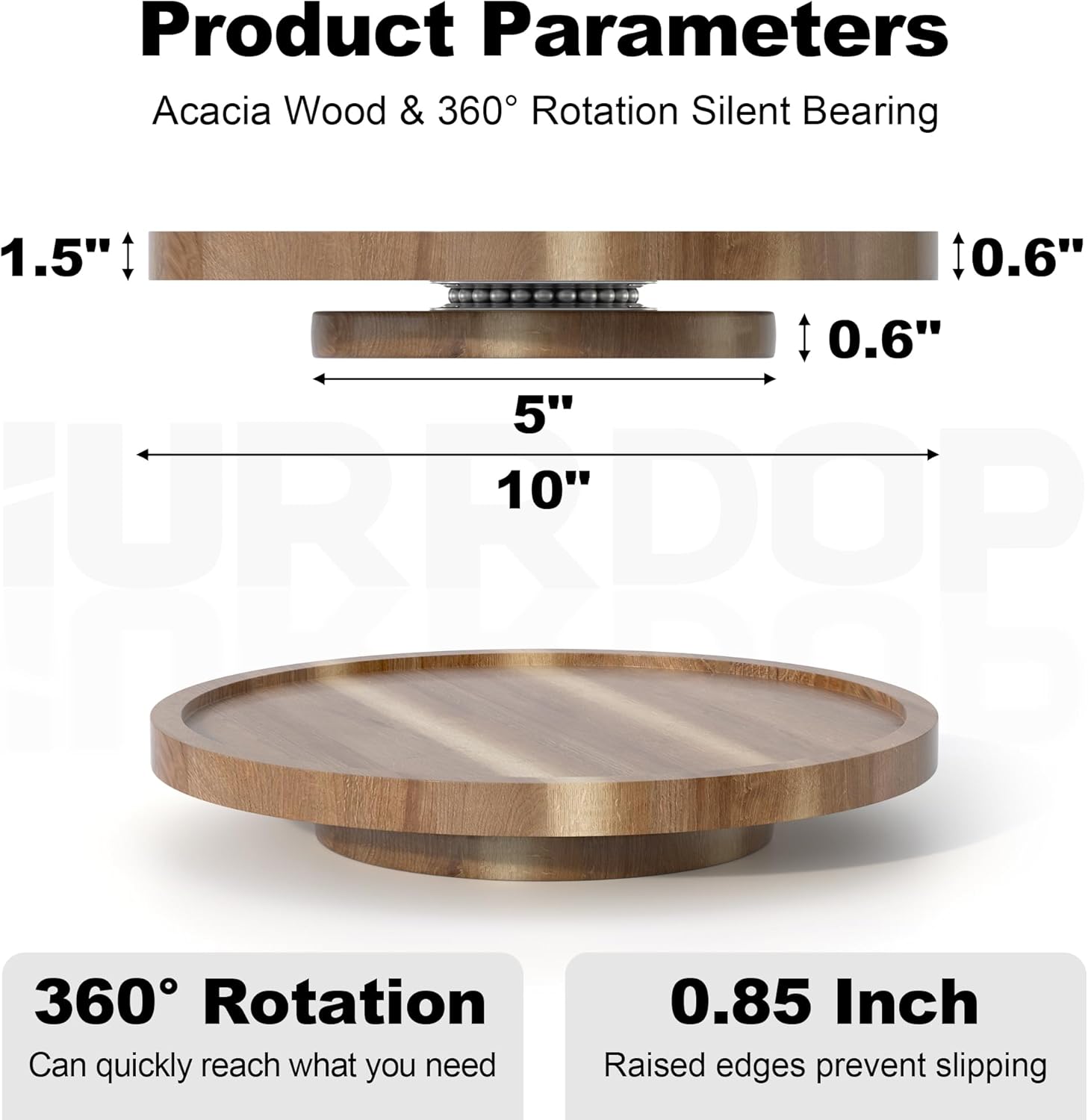 10 inch Wooden Lazy Susan Turntable, Acacia Wood Spinning Organizer for Dining Table, Cabinet, Fridge, countertop, Pantry