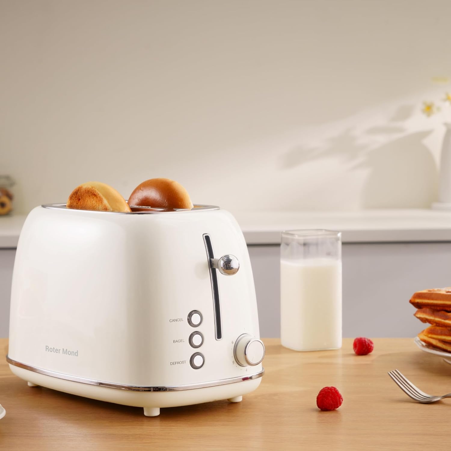 2 Slice Toaster Retro Stainless Steel with Bagel, Cancel, and Defrost Functions, 6 Bread Shade Settings, Extra Wide Slots and Removable Crumb Tray, Cream
