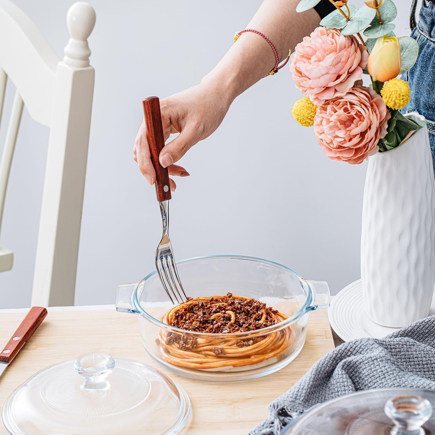 - Easy to Grab with Handle: the universal handle makes the casserole cookware easy to take it out of the oven with oven mitts, and the lid is easily lifted by the knob on top, providing you with more convenience