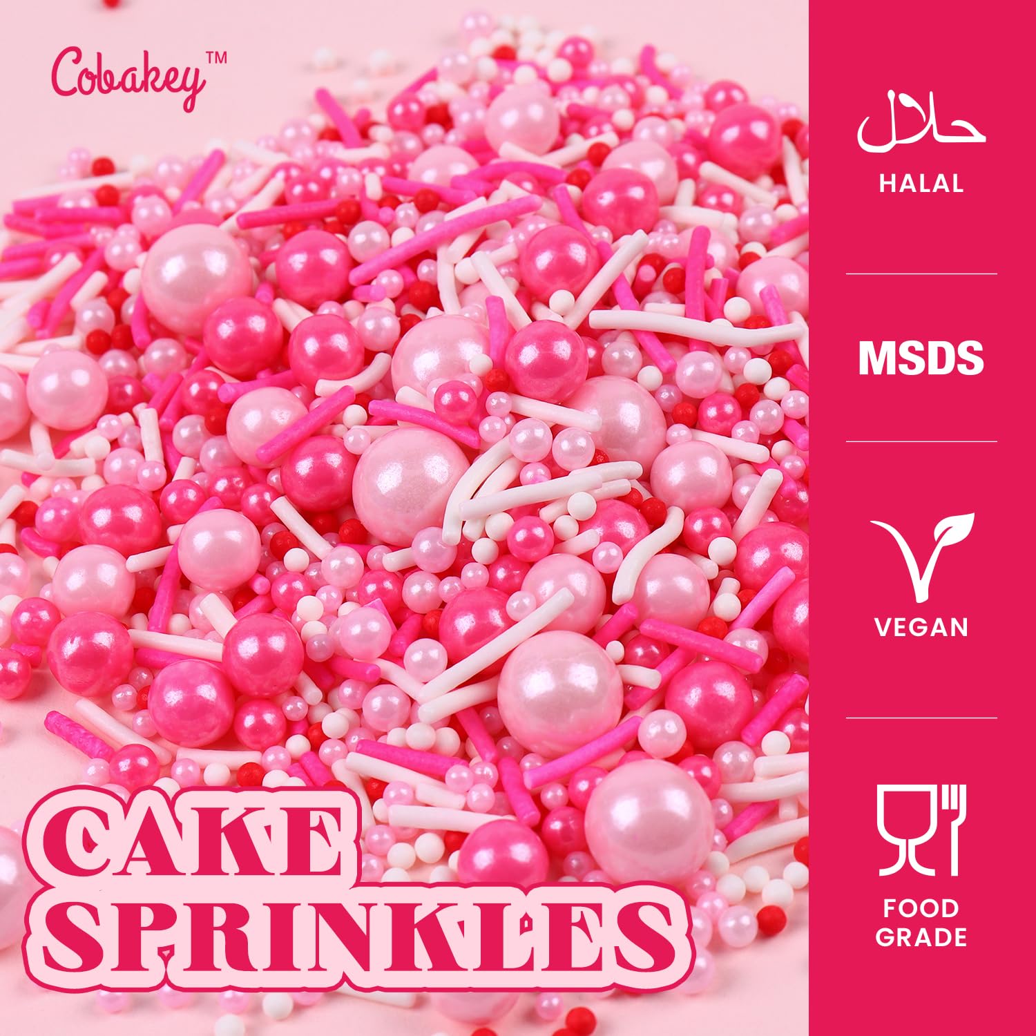 Pink Sprinkles for Cake Decorating 4.23ounce - Pearl Sprinkles for Baking, Cupcake, Ice Cream, Candy, Cookie Decorations - Pink Sprinkles for Valentines Princess Bridal Shower Wedding Party