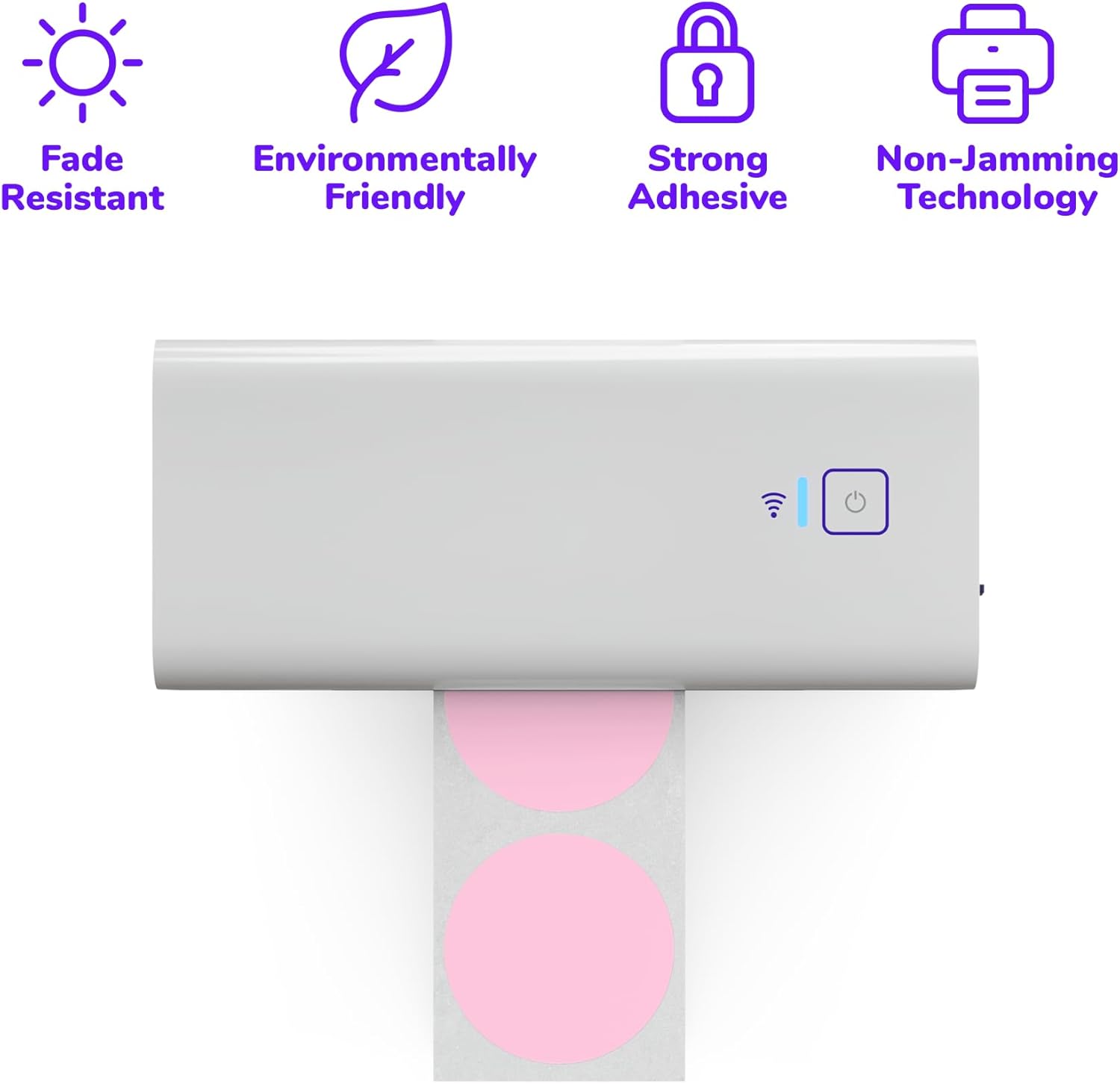 Rollo Circle Thermal Labels 2 Inch - Roll of 1,000 Round Sticker Labels - Multi-Purpose Direct Thermal Printer Stickers 2x2 (Pink)