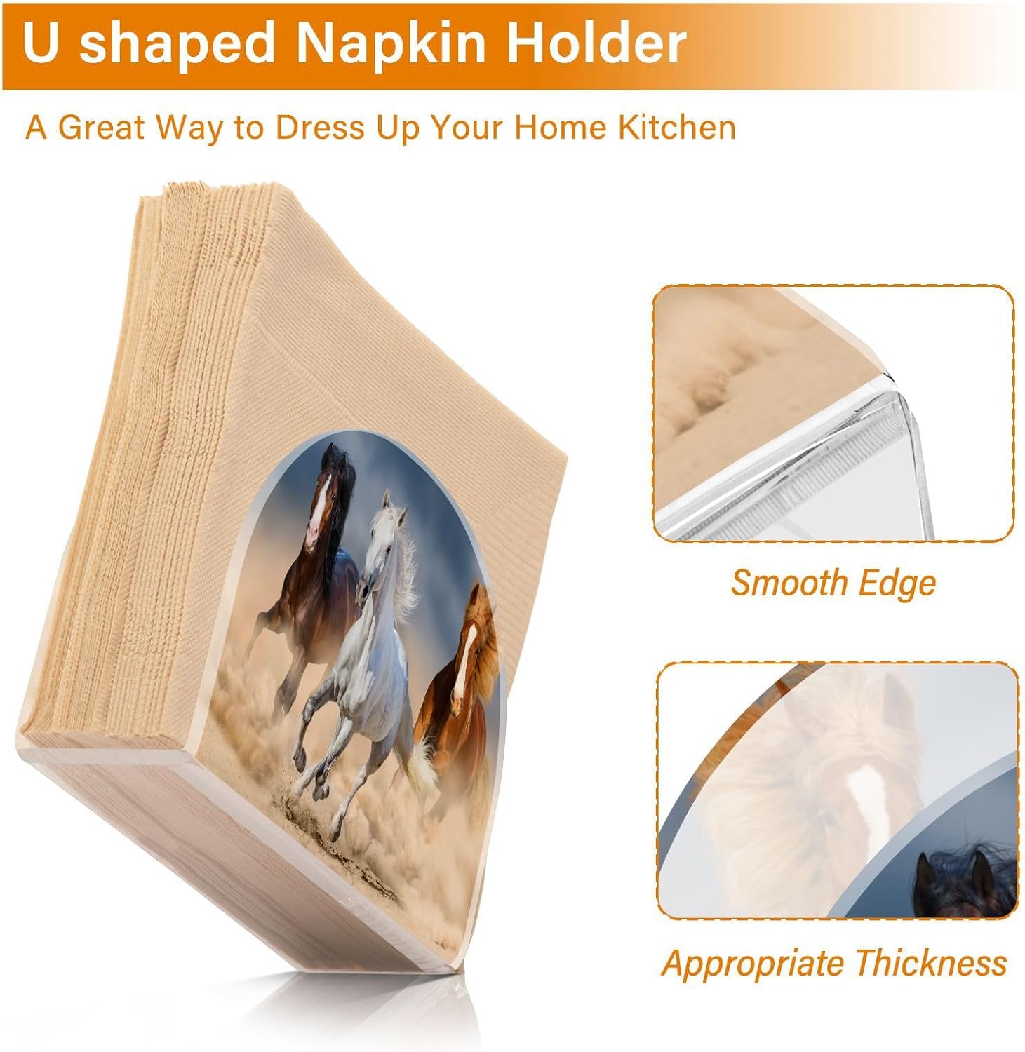 Horses Napkin Holder for Table Paper Napkins Holder Acrylic Tissue Dispenser Kitchen Dining Room Bathroom Party Car Deco