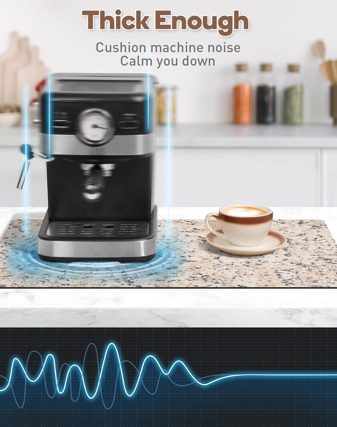 - Noise-dampening & Heat-resistant - Our coffee bar mat is 1/6" thick, which can effectively cushion coffee machine noise and reduce clinking sounds as cups touch the tabletop, ensuring you a tranquil and pleasant coffee experience. Additionally, it provides ample protection for your countertop, effectively shielding it from the heat of boiling water.