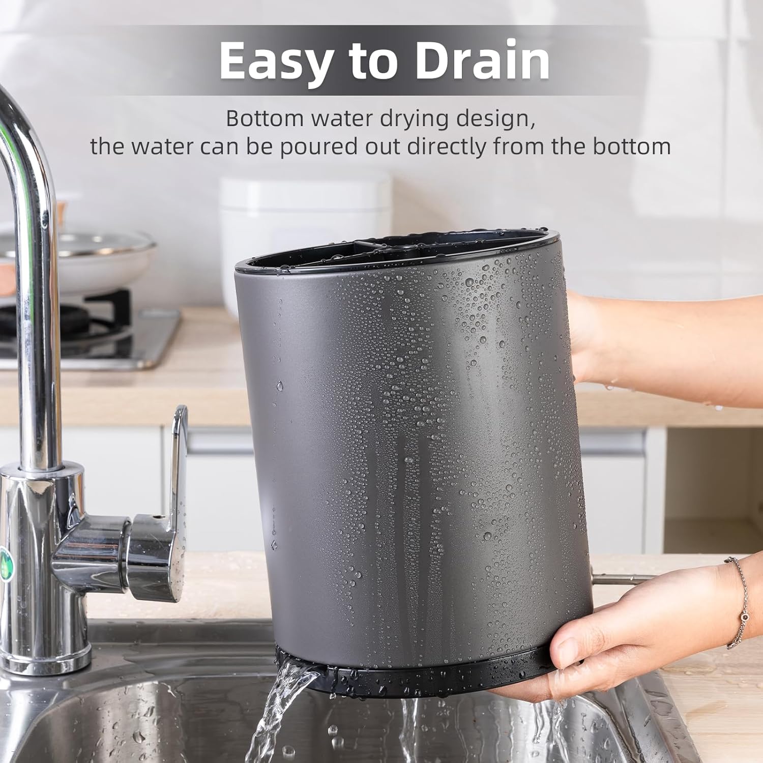 - Stainless Steel Material and Anti-Fingerprint:The utensil holder is made of high-quality stainless steel, ensuring durability and resistance to fingerprints. This material guarantees that the holder will not rust or corrode, making it a long-lasting and elegant addition to the kitchen.