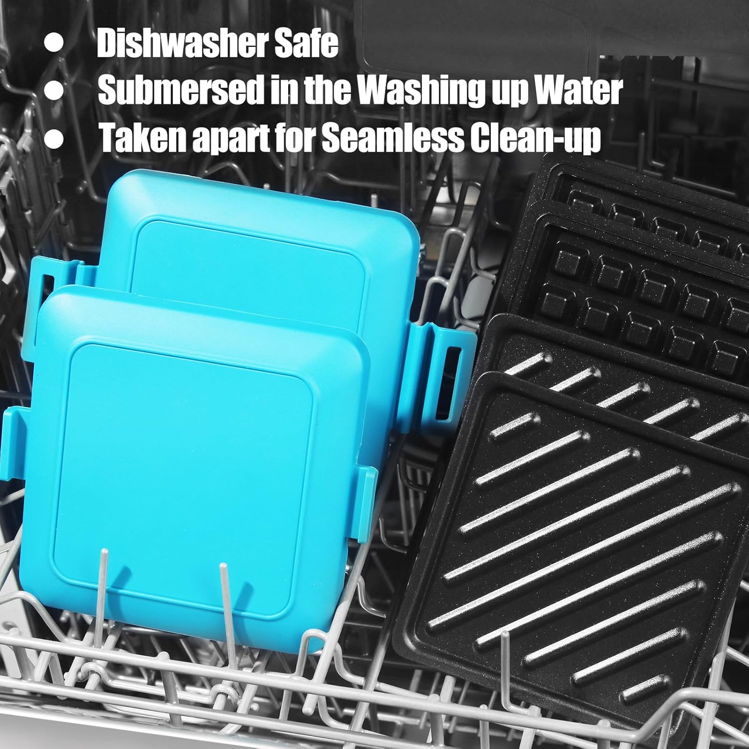 - 3. Dishwasher Safe and No Electric Unplugged microwave sandwich toaster use a safe non-stick coating that does not stick to the surface of the food, toastie press can be washed in the dishwasher or soaked in washing water with a soft cloth. Do not scrub with sharp objects