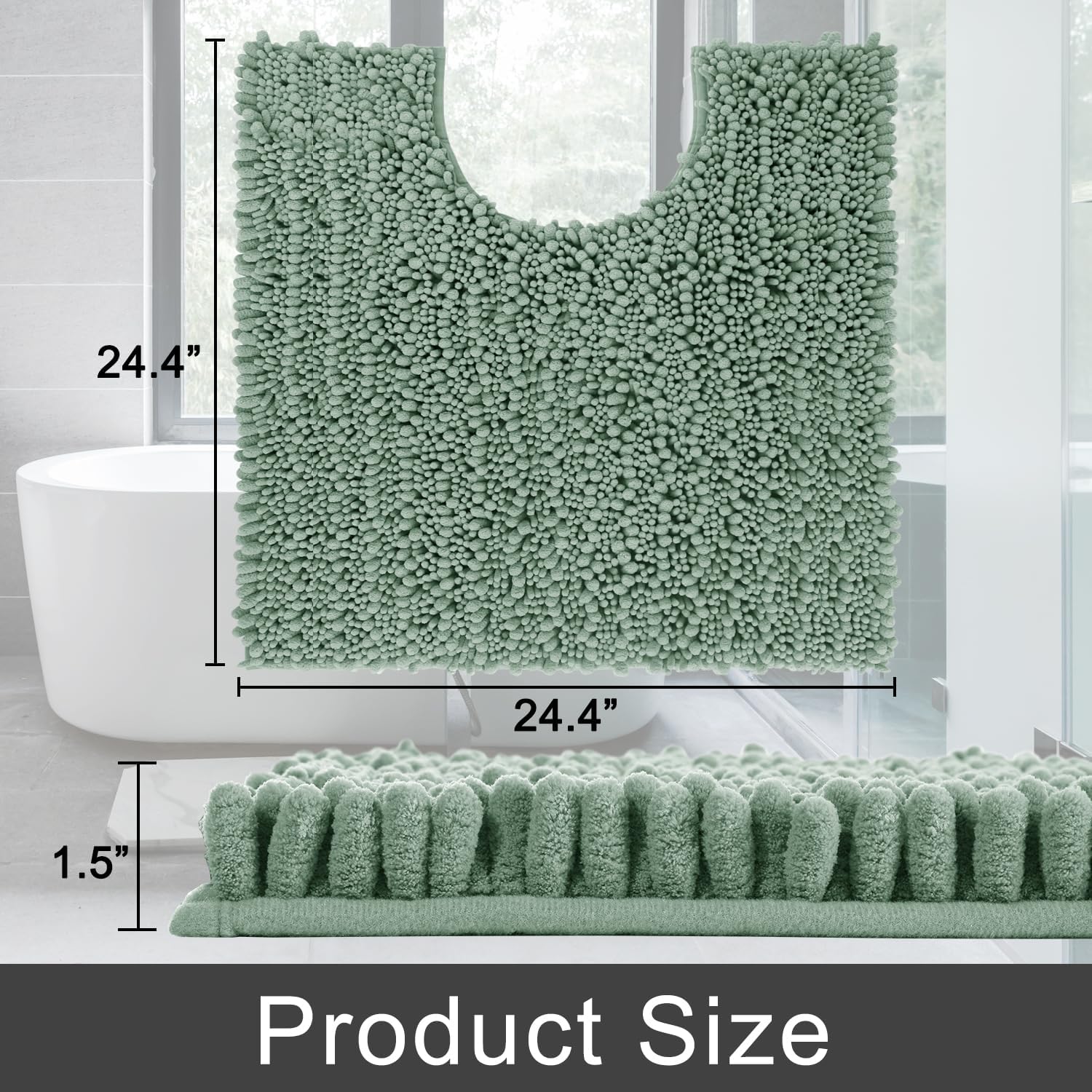 Yimobra Toilet Rug U Shaped Washable 24x20 Inch - Ultra Soft Absorbent Chenille Bath Rugs for Toilet, Quick Dry & Machine Washable, Non Slip Contour Bathroom Mat, Green