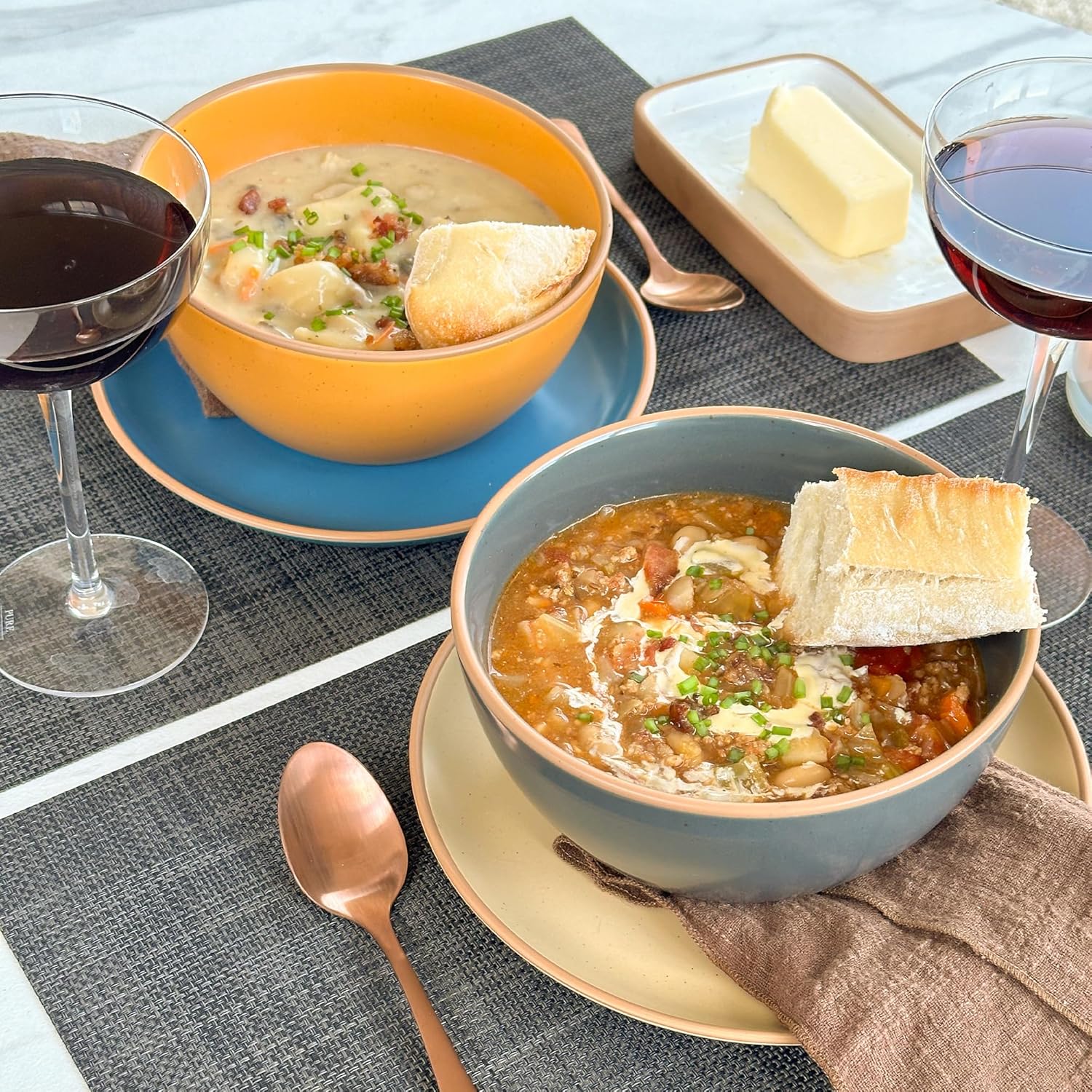 - CRYSTALLIZED SCRATCH RESISTANT FORMULA: Our glaze is extra strong to prevent scratches from your knives and forks. Only we produce a crystallized matte glaze that is strong enough to resist scratches under 1000 grams of pressure. Please note dark marks may occur due to finish on certain silverware, which are not scratches, but metal residue marks. To remove metallic stains, see content below.