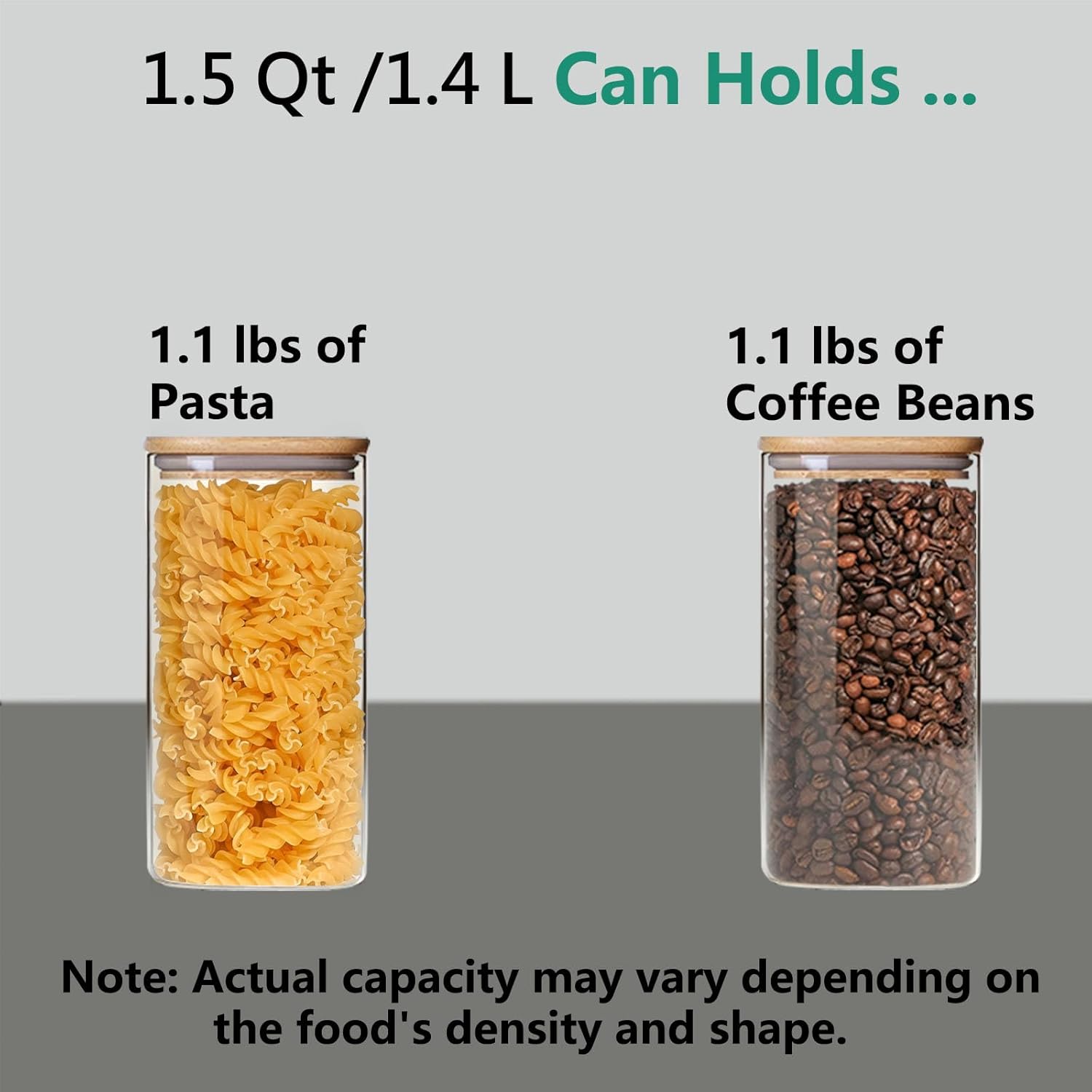 - [Airtight Storage Jar] Each glass jar is sealed around the wooden lid with a comprehensive silicone sealing ring, creating a moisture-proof environment that keeps your dry food clean and fresh.