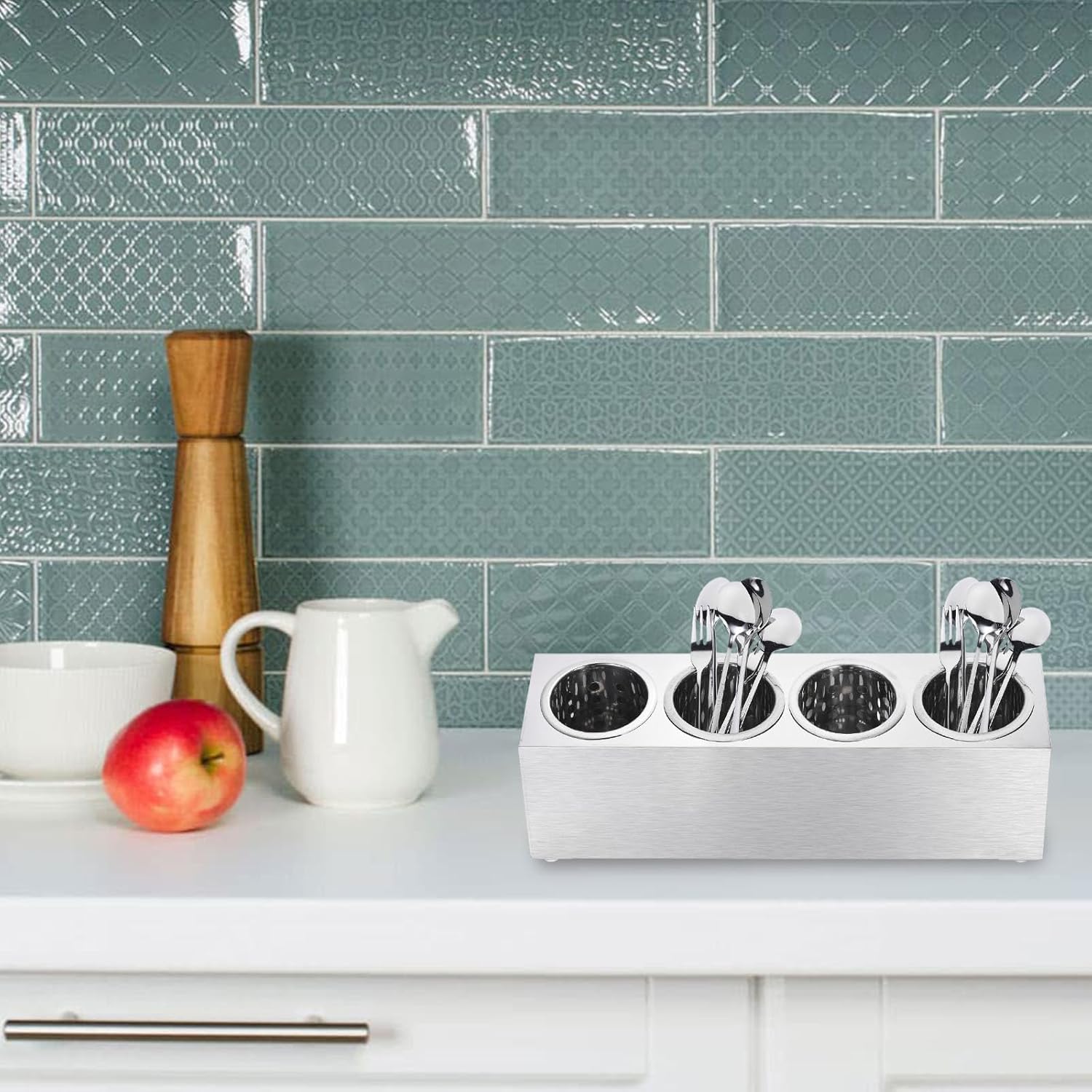 - Wide Application - Utensil Holders are suitable for storing spoons, forks, knives, chopsticks, silverware, or other small items. The rubber feet prevent it from rolling, slipping, or tipping over. Used widely in kitchen, restaurant, buffets, catering, cruise, and serving area.
